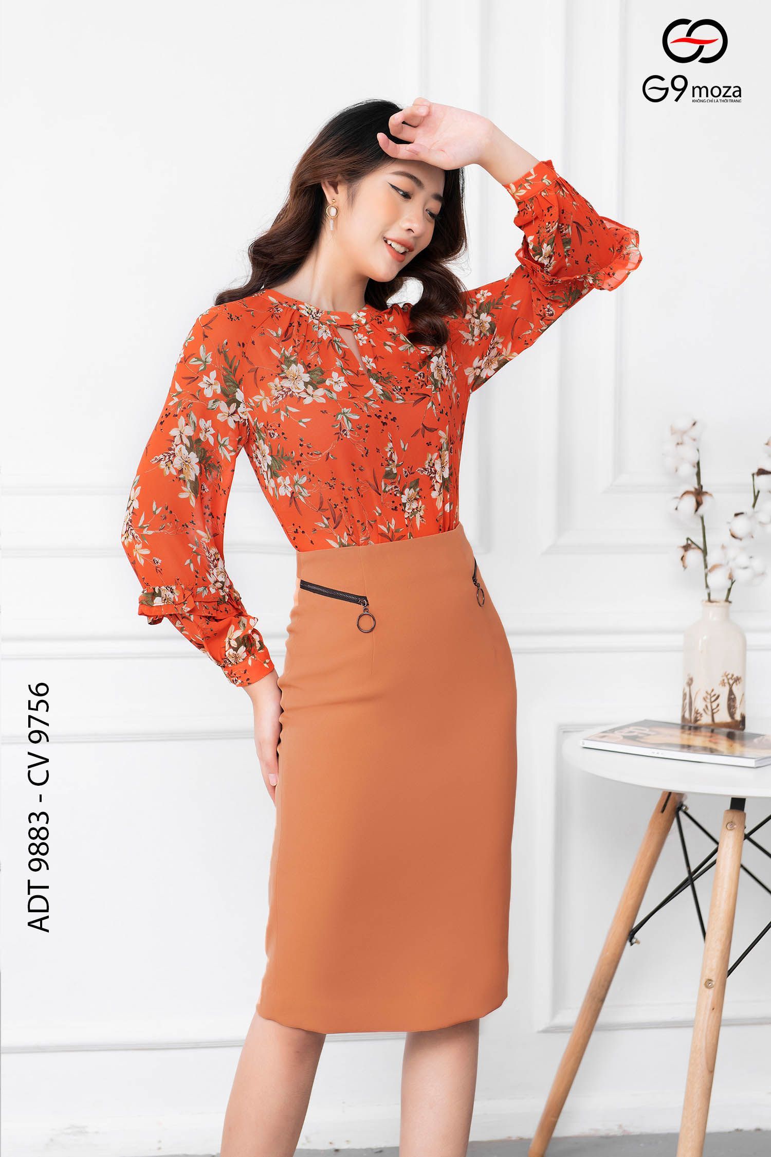 Tiết trời chuyển mình sang mùa lạnh mang theo sự ảm đạm và chút buồn bã, vì vậy hãy bổ sung ngay cho tủ đồ của mình những trang phục mang sắc màu tươi mới và ấm cúng hơn. Áo sơ mi họa tiết mix cùng chân váy ôm không còn mới lạ nhưng cách kết gợp của hai sắc cam nóng bỏng lại tạo nên sứt hút khó cưỡng cho bộ trang phục.
