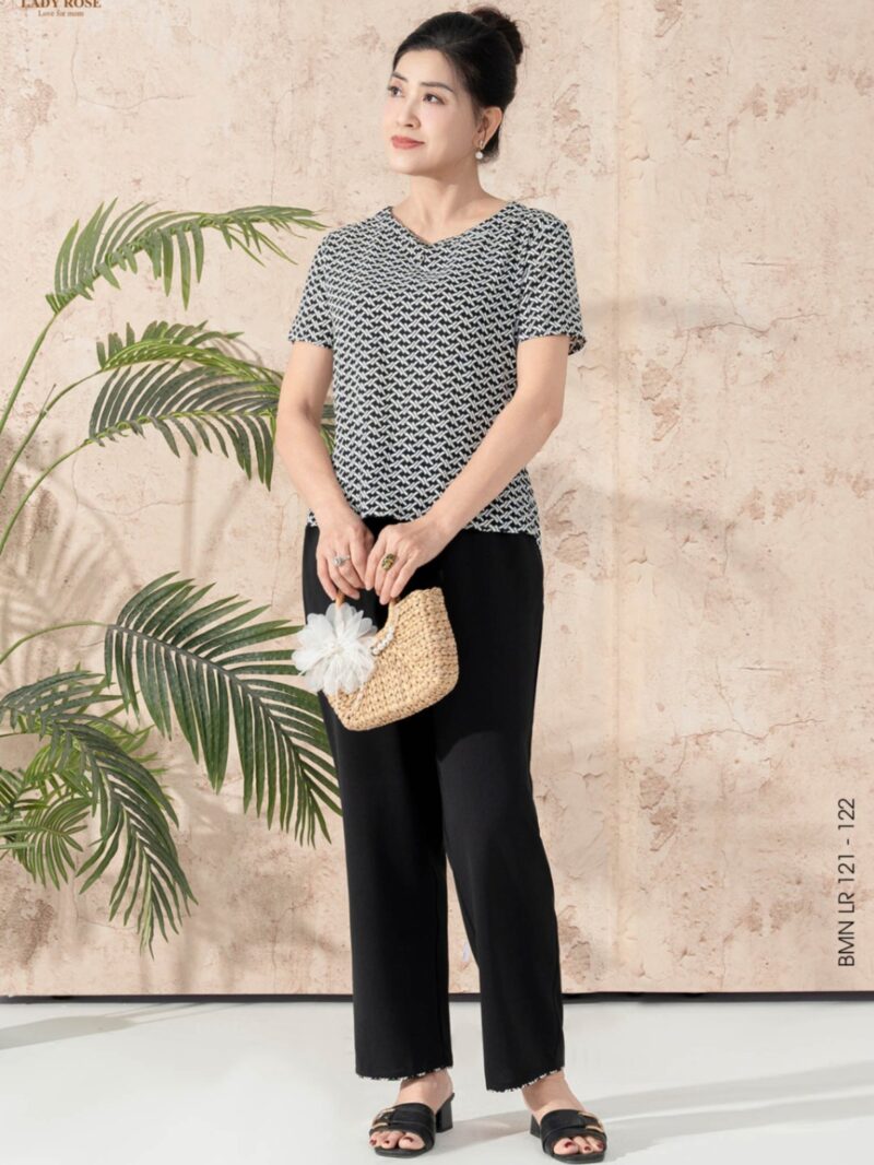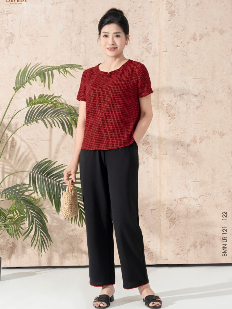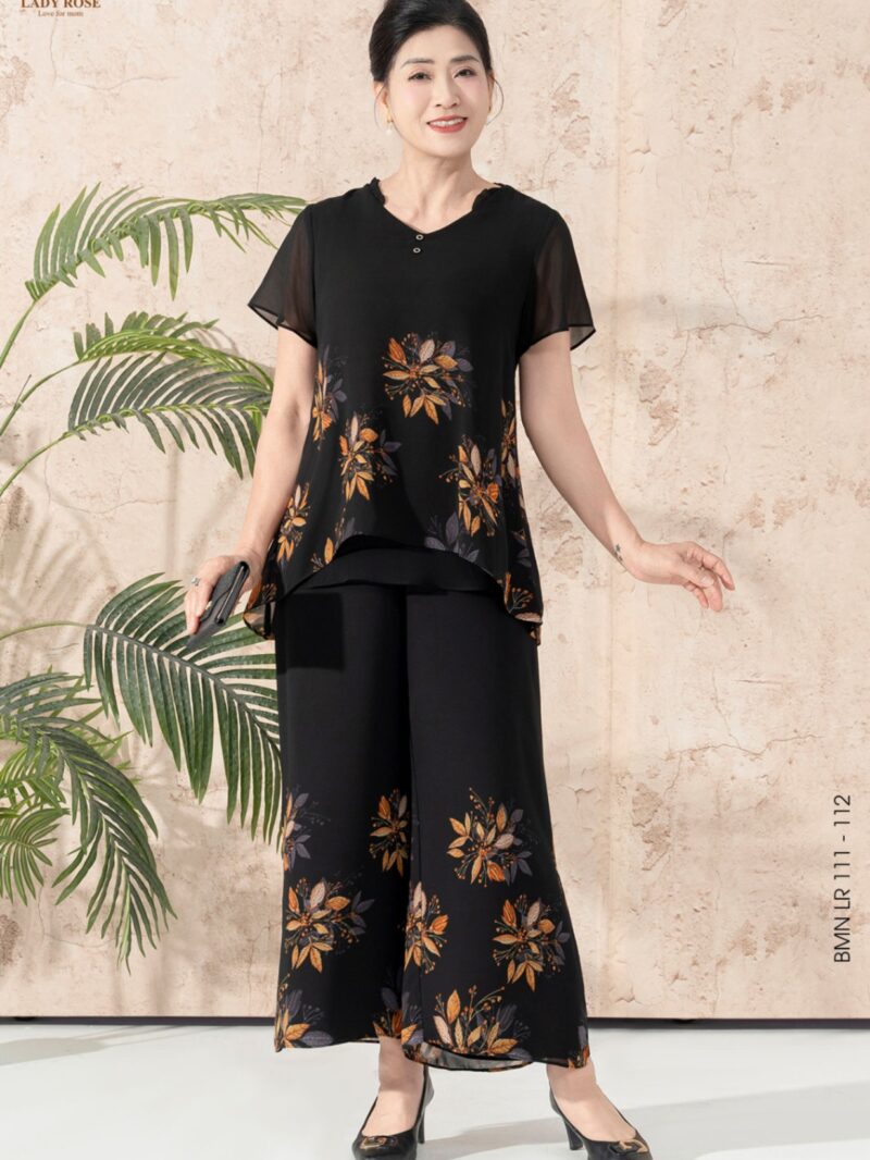 Bộ mặc nhà áo tay cộc quần ống suông chất liệu chiffon 25S52BMNLR111+112-1