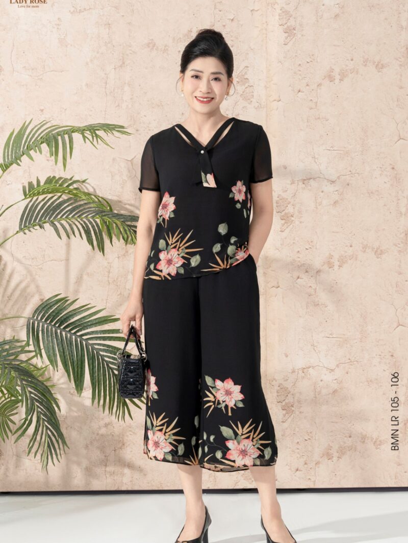 Bộ mặc nhà áo tay cộc quần ống suông chất liệu chiffon 25S52BMNLR111+112-2