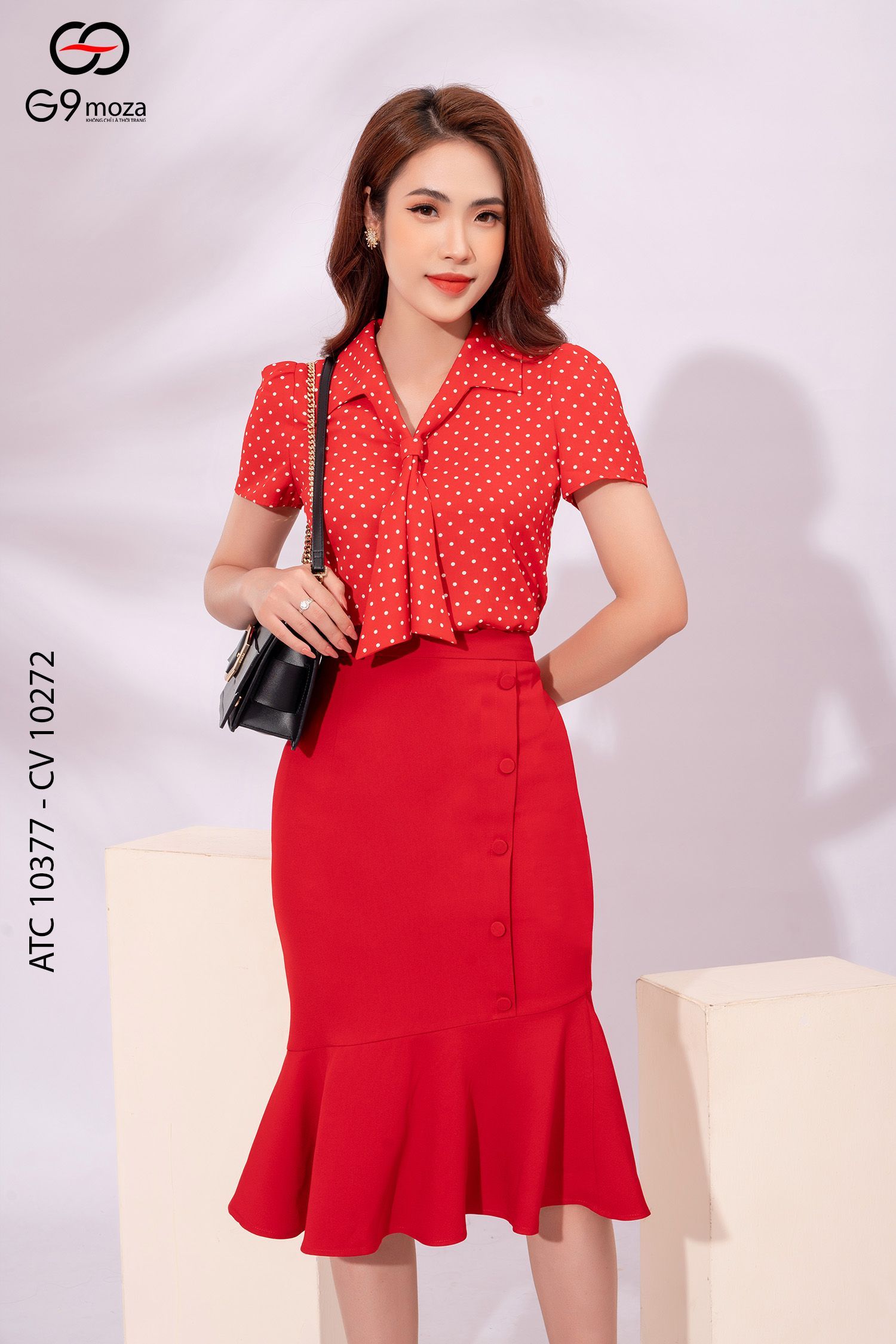 Áo sơ mi sặc sỡ không chỉ giúp các chị em trông nổi bật mà còn đem đến sự trẻ trung và nguồn năng lượng tích cực cho cả người mặc lẫn những người xung quanh. Khi kết hợp với chân váy đuôi cá cách điệu tạo nên outfit ngọt ngào và bắt mắt.