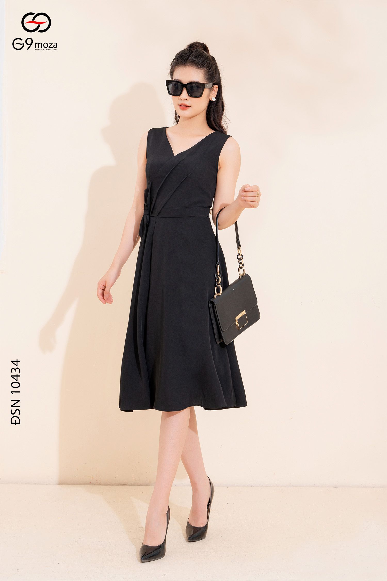 Đầm đen cổ khoét chữ V thời thượng dường như là item basic của các cô nàng công sở. Để set đồ này bớt đơn điệu, các chị em hãy nhấn nhá thêm bằng đôi giày cao gót hay túi xách cùng tone vừa thanh thanh lịch lại vừa bắt mắt.