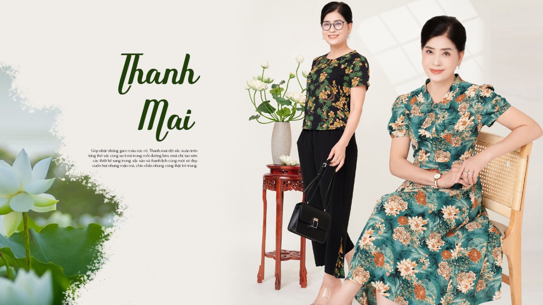 Xuân đến thật dịu dàng nhưng mang theo bao âm hưởng vui tươi đón chào một mùa lãng mạn, tràn đầy sức sống và lòng người cũng rạo rực, phơi phới cùng xuân. Không phải ngẫu nhiên mà mùa xuân lại được mong chờ đến vậy. Đến với Lady Rose, Quý bà, Quý cô được đánh thức tiếng gọi của tuổi xuân, tỏa sáng trong những thiết kế đầm và bộ mặc nhà cao cấp và sang trọng. Đó cũng là nguồn cảm hứng để các nhà thiết kế của Lady Rose sáng tạo nên BST “Thanh Mai”.