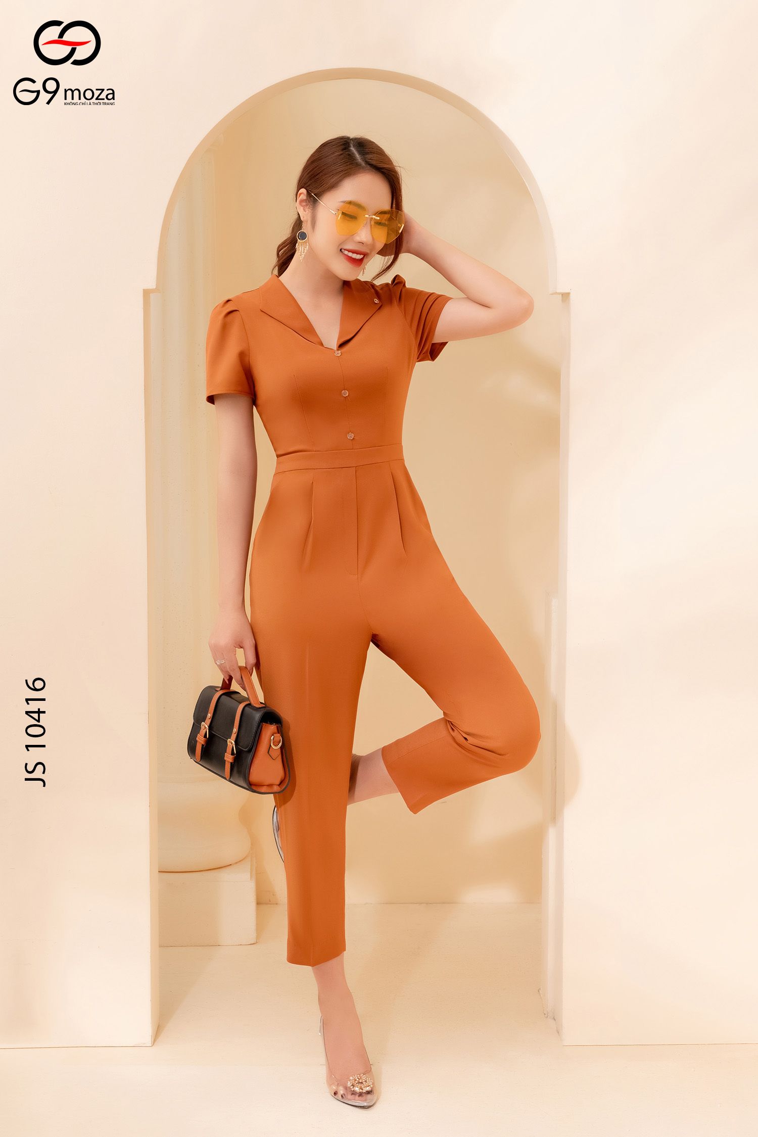 Nếu đã chán những chiếc chân váy, áo sơ mi hay đầm thì thiết kế jumpsuit với phần vai bồng và kiểu cổ bẻ sẽ là sự thay đổi đầ mới mẻ. Nàng có thể kết hợp phụ kiện tùy ý để có được vẻ ngoài cá tính, năng động nhất.