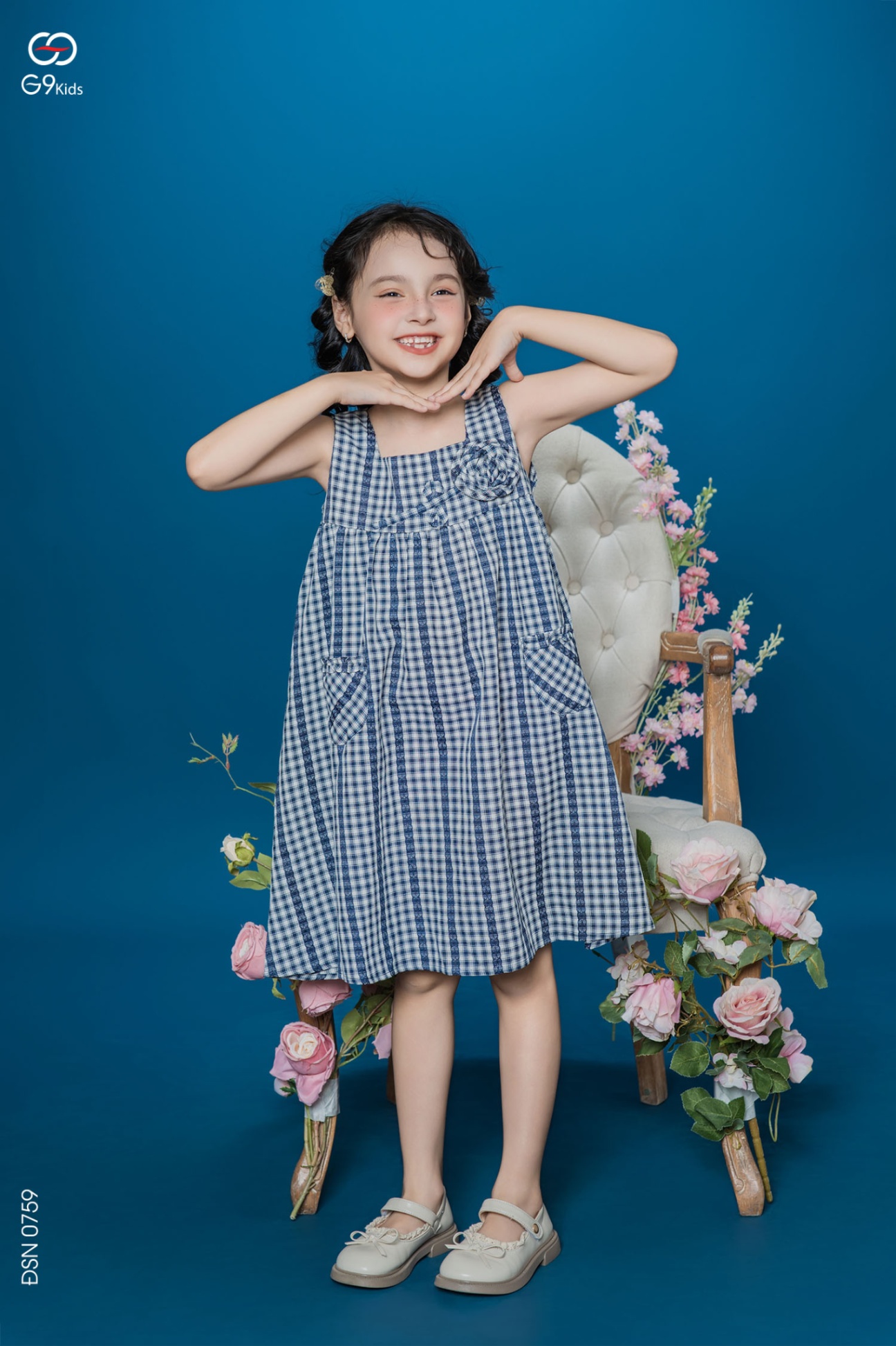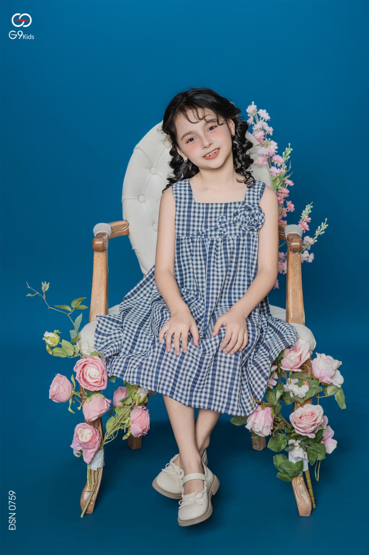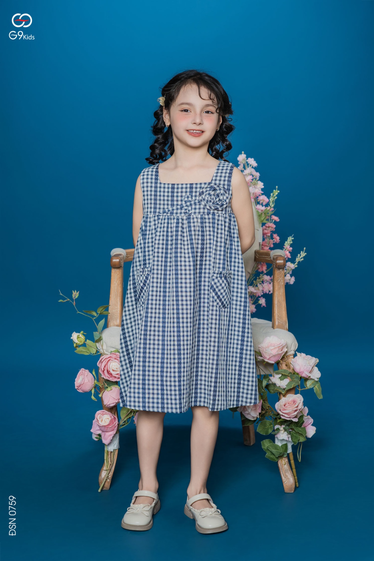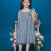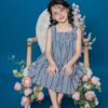 Váy sát nách chất liệu thô kẻ phối hoa 3D cho bé gái 25S57BĐSN0759-2