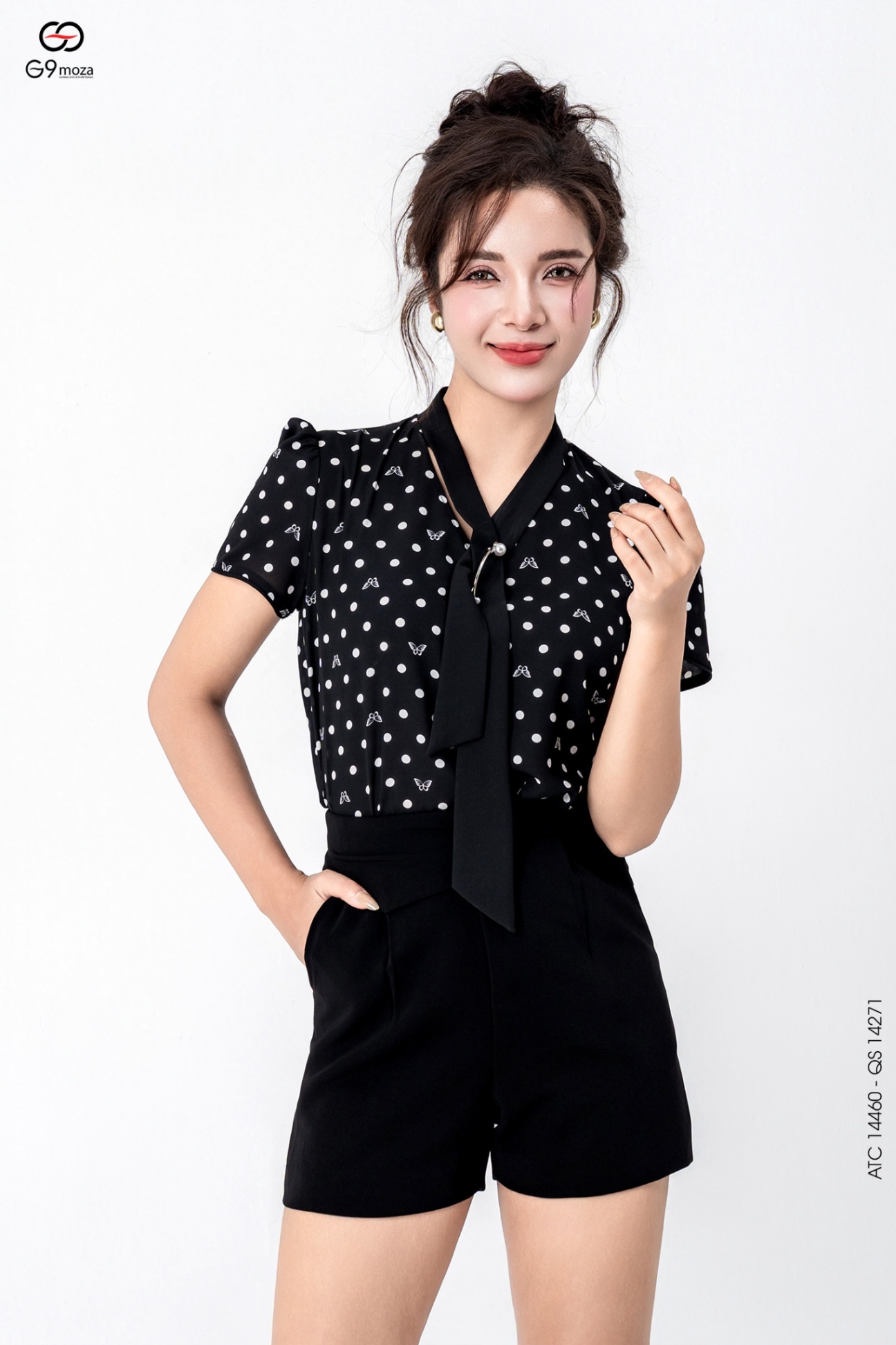 Áo tay cộc phối nơ cổ 25S16ATC14460-1