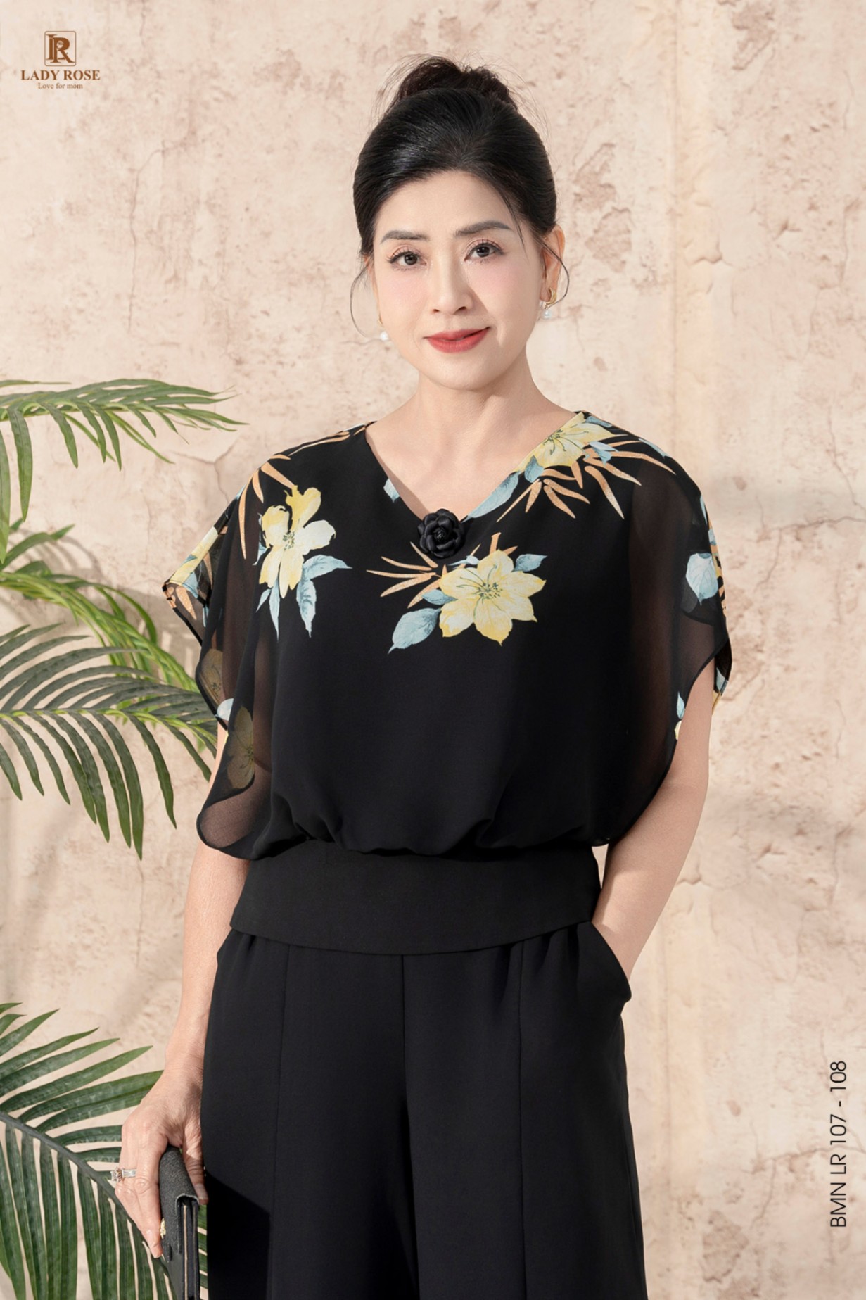 Bộ áo cánh dơi quần ống suông chất liệu chiffon 25S51BMNLR107+108-1