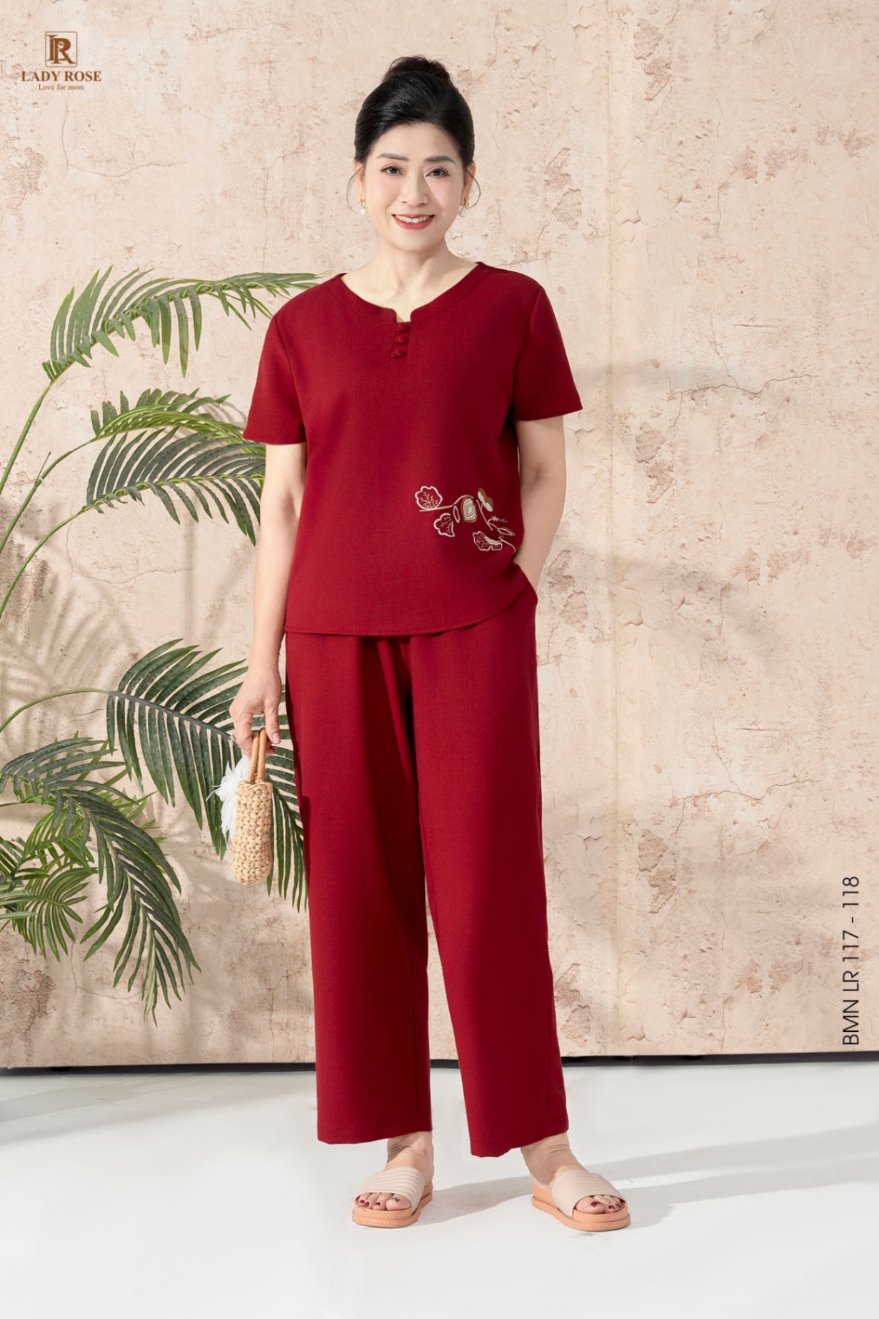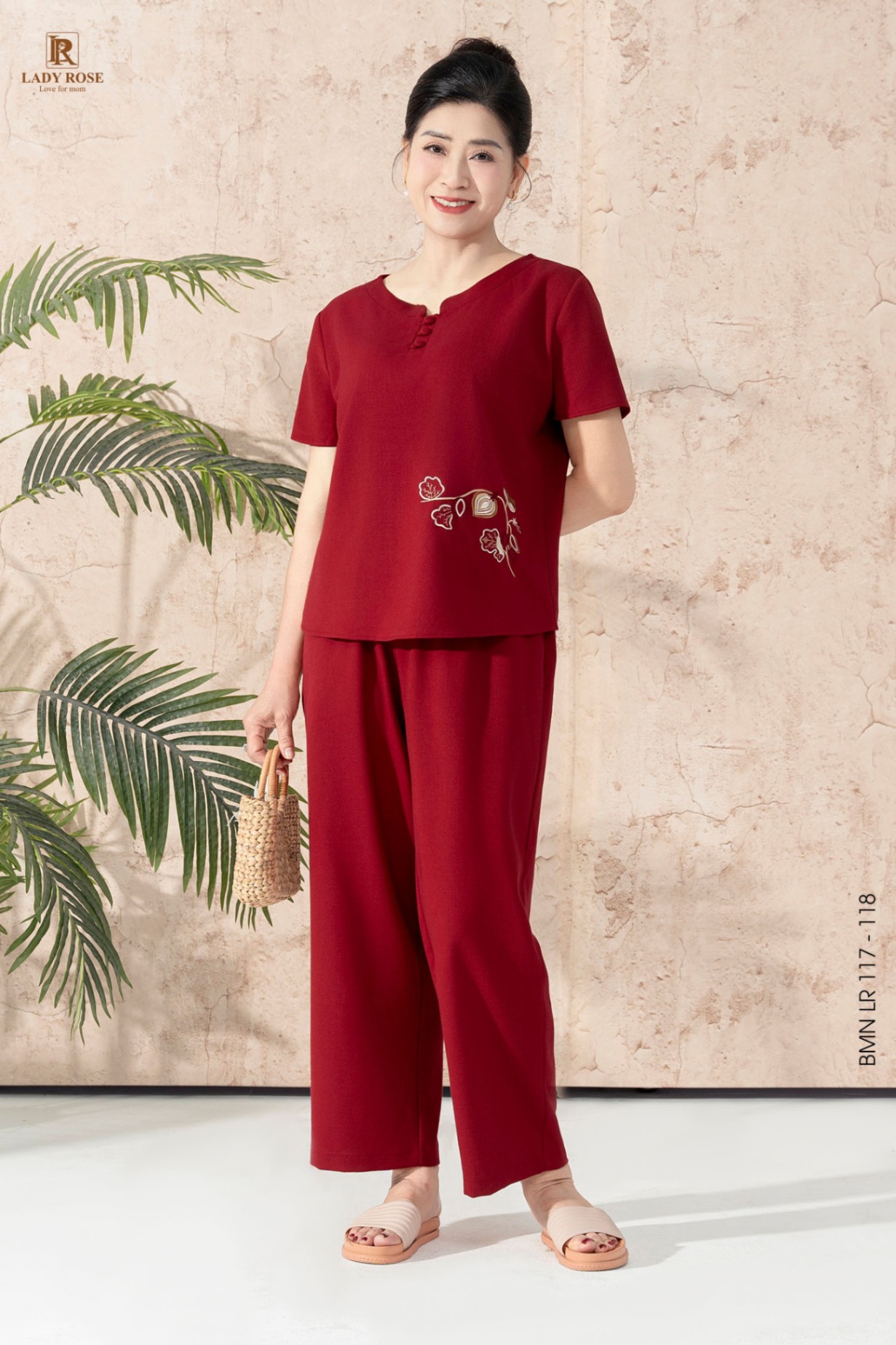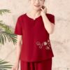 Bộ mặc nhà áo tay cộc quần dài chất đũi hàn 25S16BMNLR117+118-2