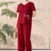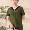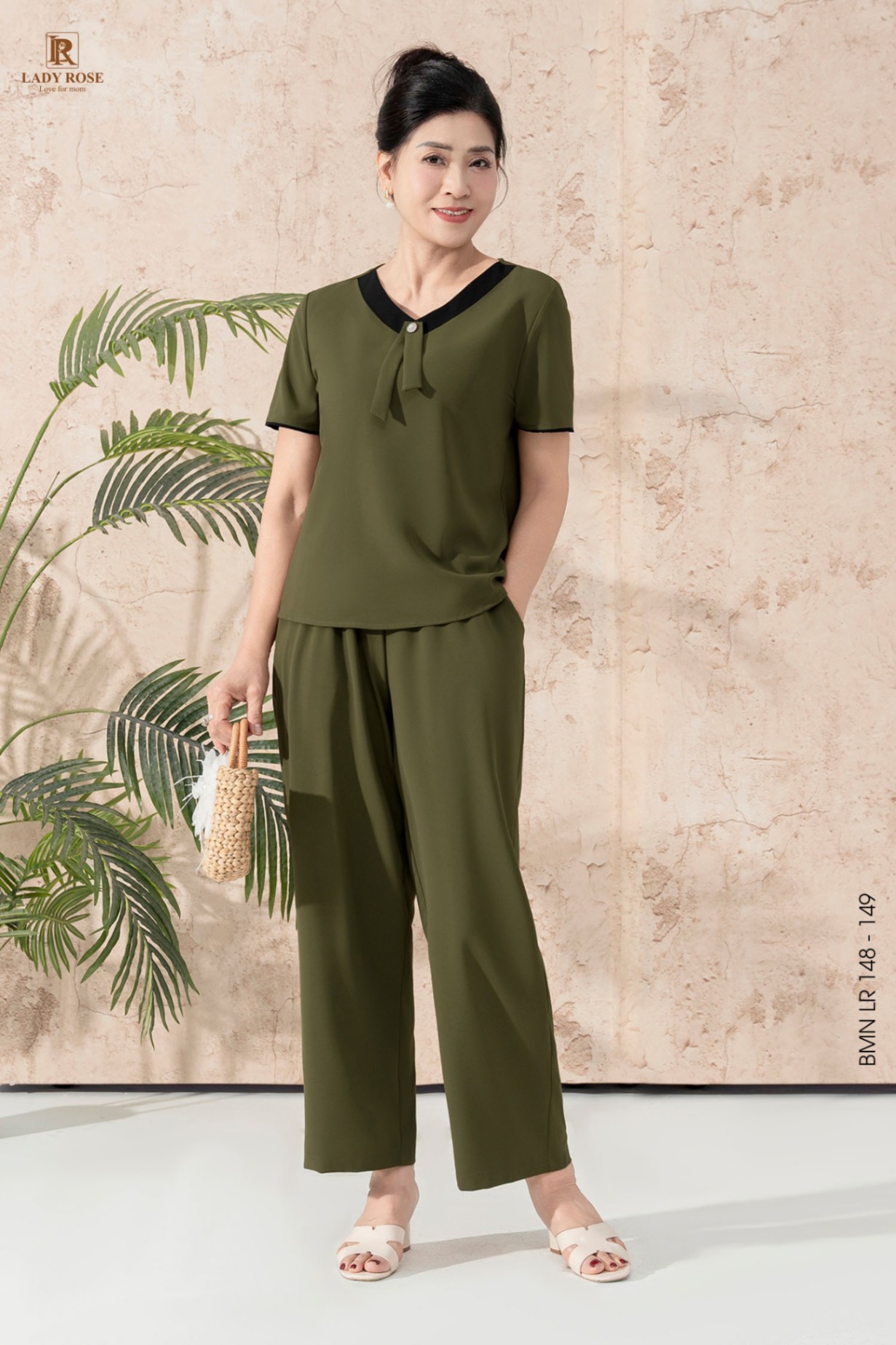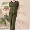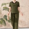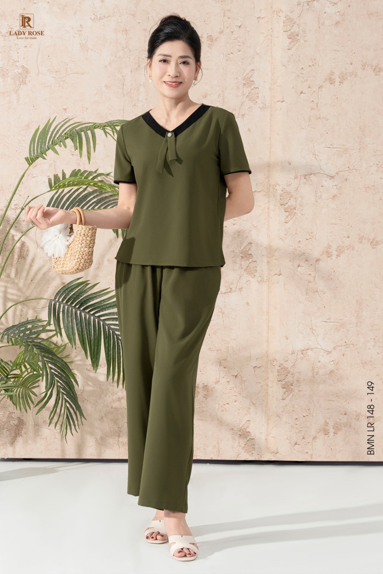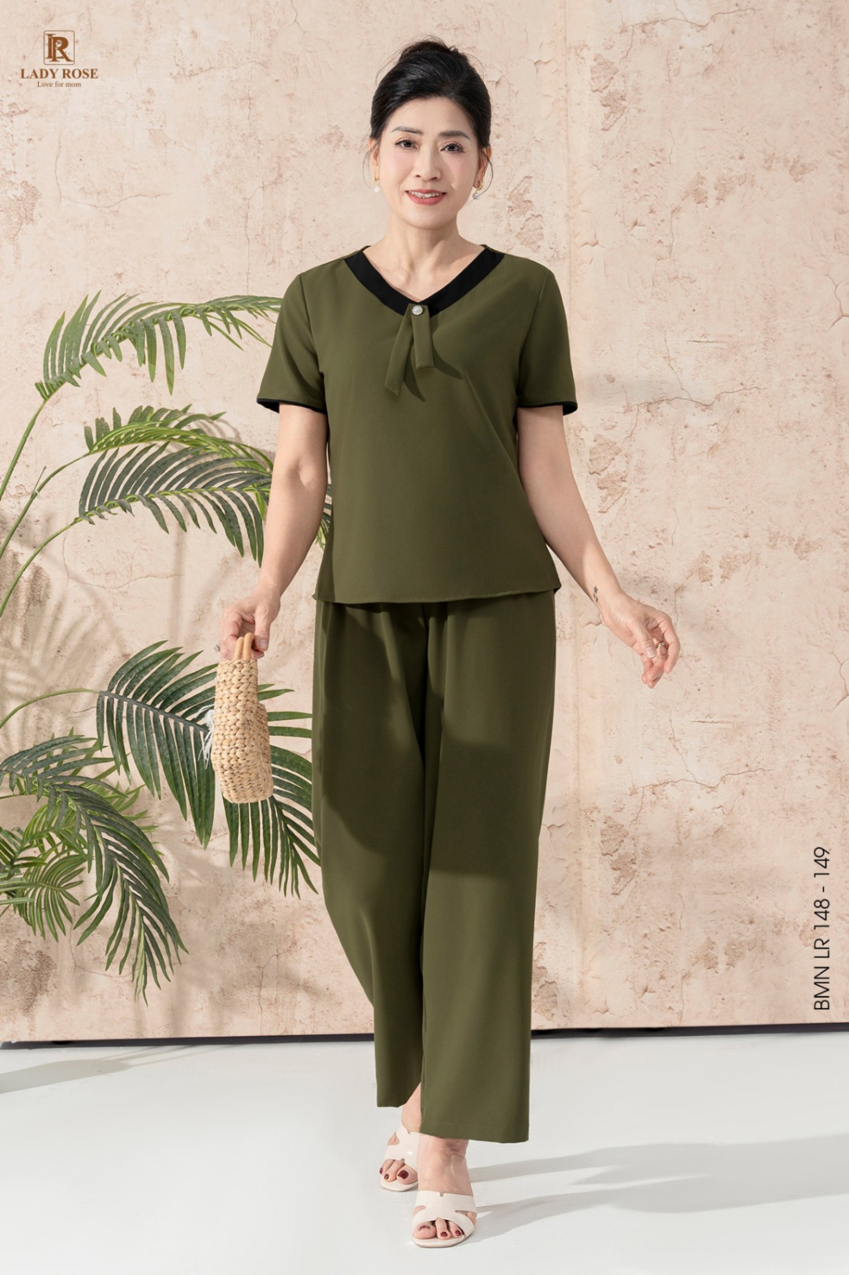 Bộ mặc nhà áo tay cộc quần dài chất liệu đũi hàn 25S12BMNLR148+149-2