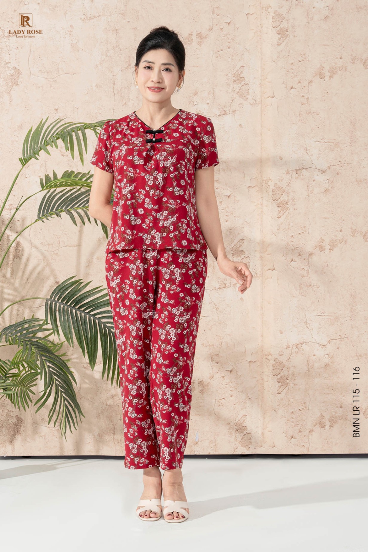 Bộ mặc nhà áo tay cộc quần dài chất liệu đũi hàn 25S16BMNLR115+116-2