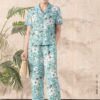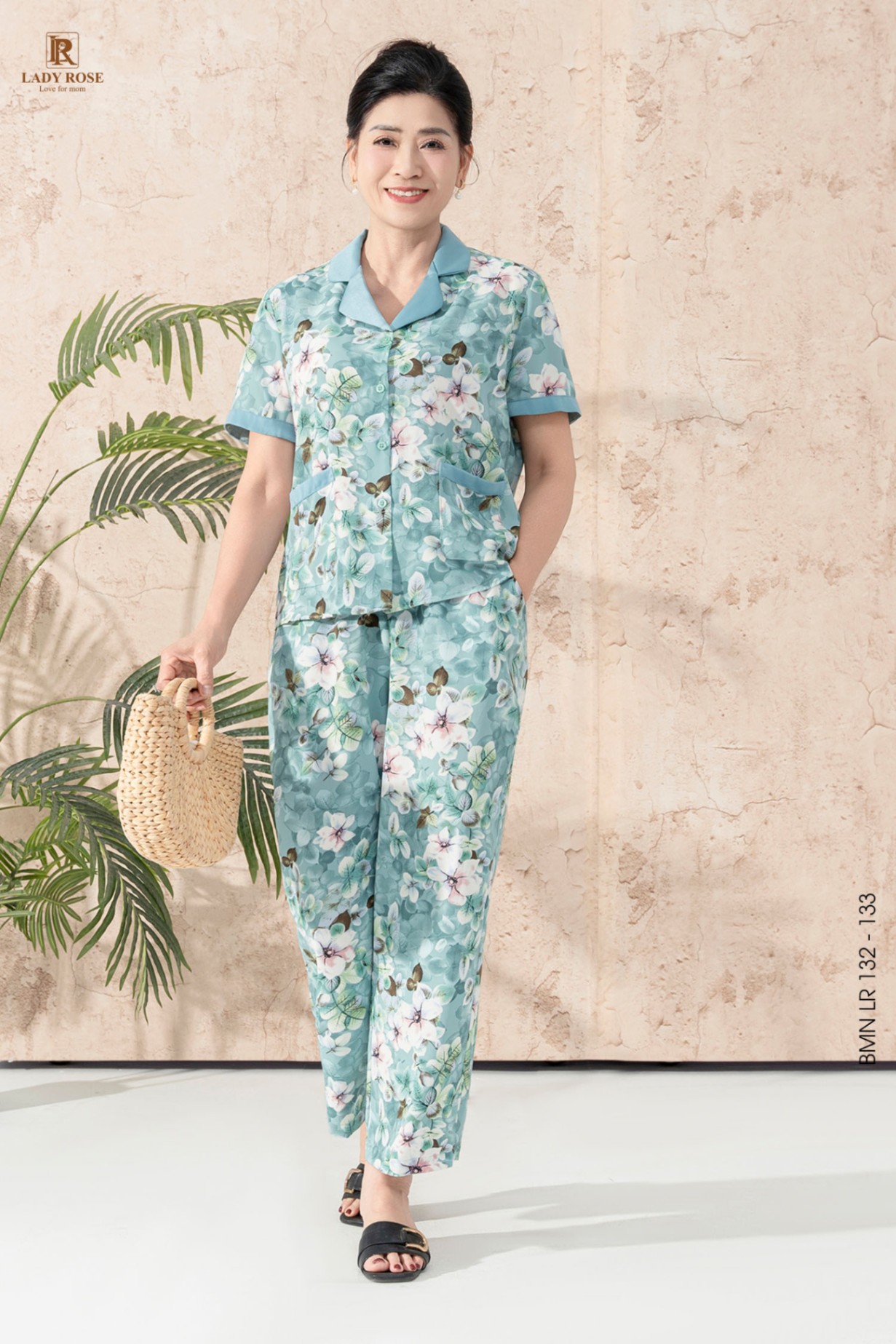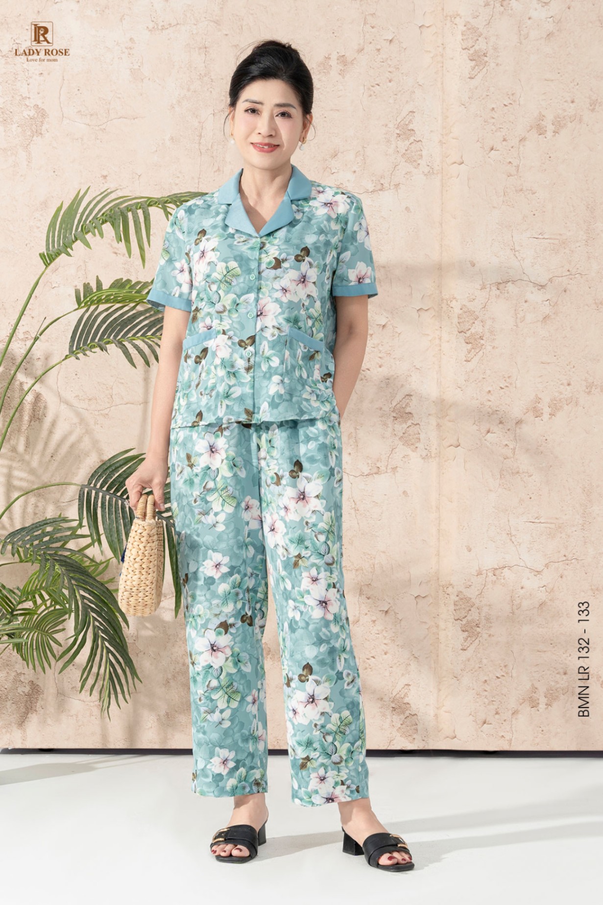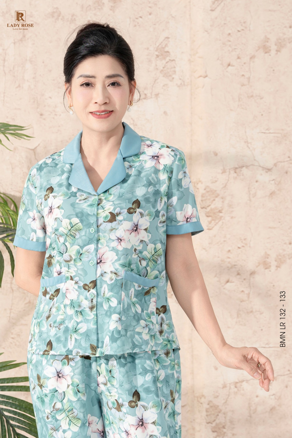 Bộ mặc nhà áo tay cộc quần dài chất liệu lụa hàn 25S17BMNLR132+133-1