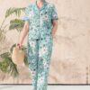 Bộ mặc nhà áo tay cộc quần dài chất liệu lụa hàn 25S17BMNLR132+133-1