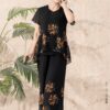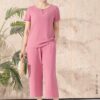 Bộ mặc nhà áo tay cộc quần dài dáng suông chất đũi hàn 25S17BMNLR119+120-2