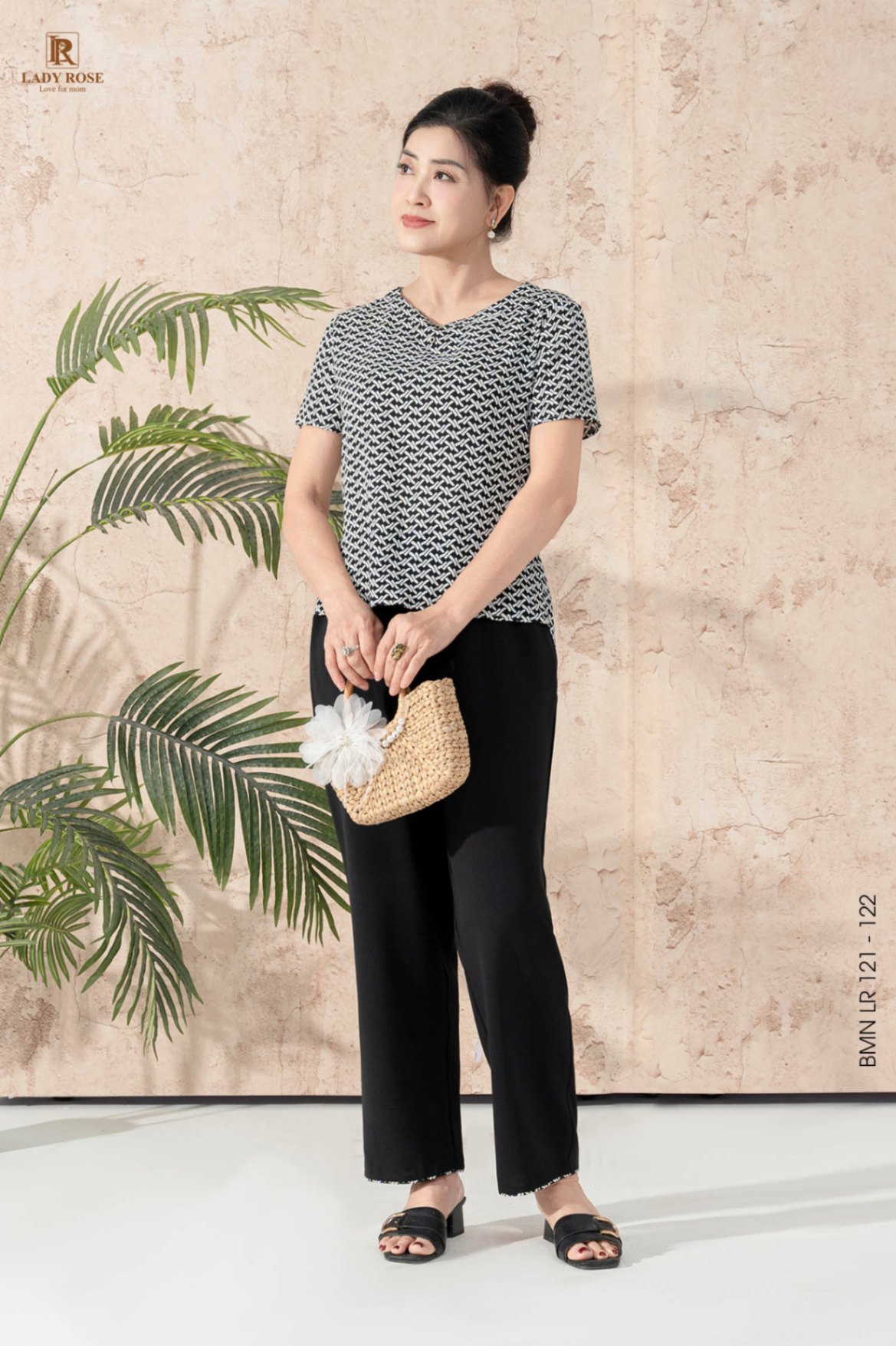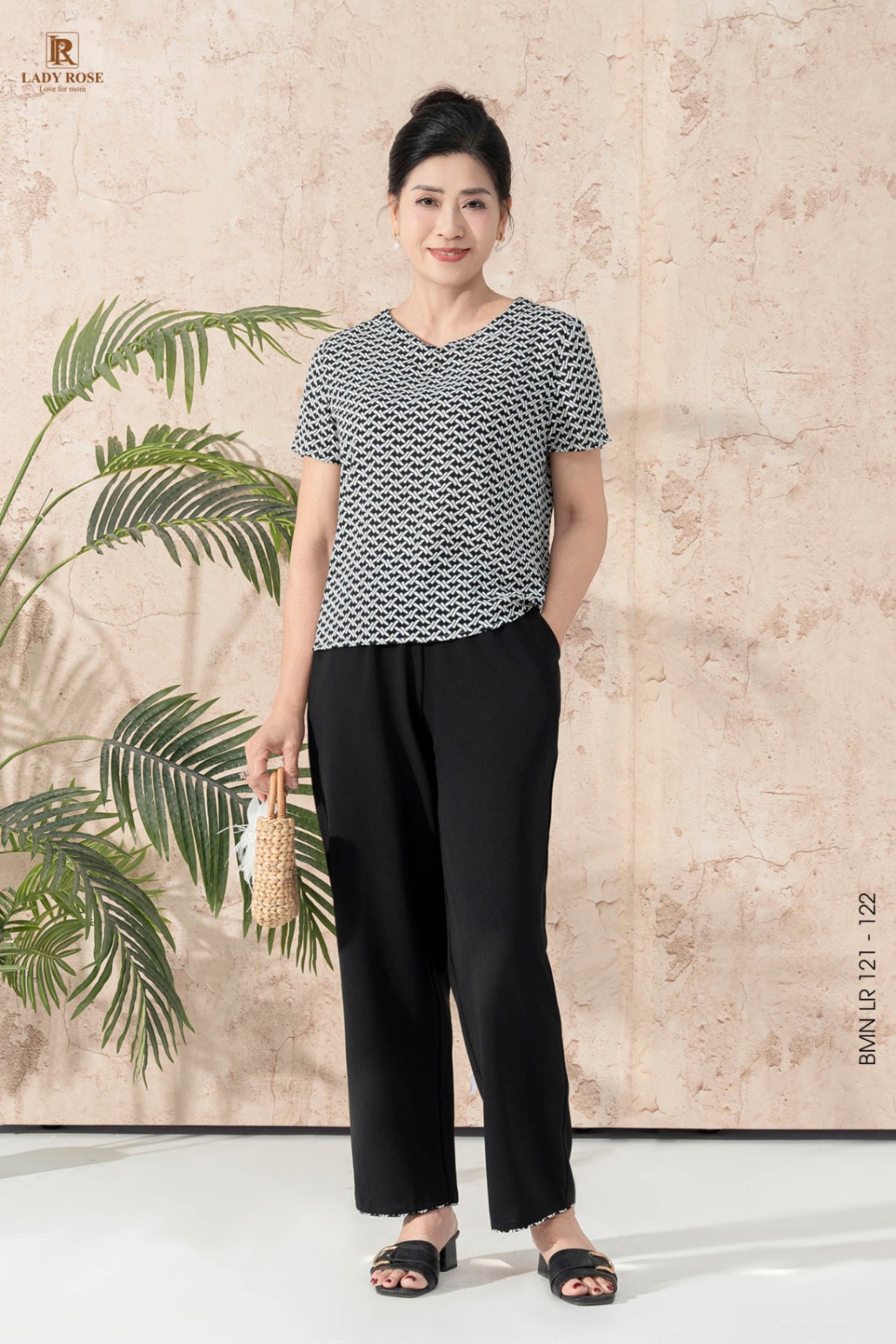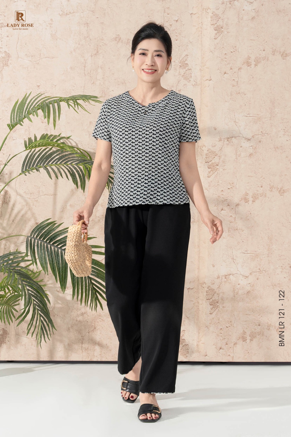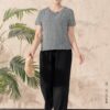 Bộ mặc nhà áo tay cộc quần dài ống suông chất liệu đũi hàn 25S12BMNLR121+122-1