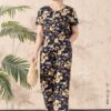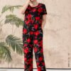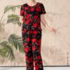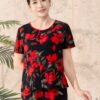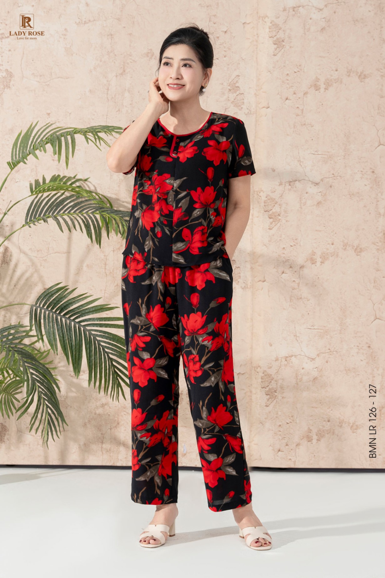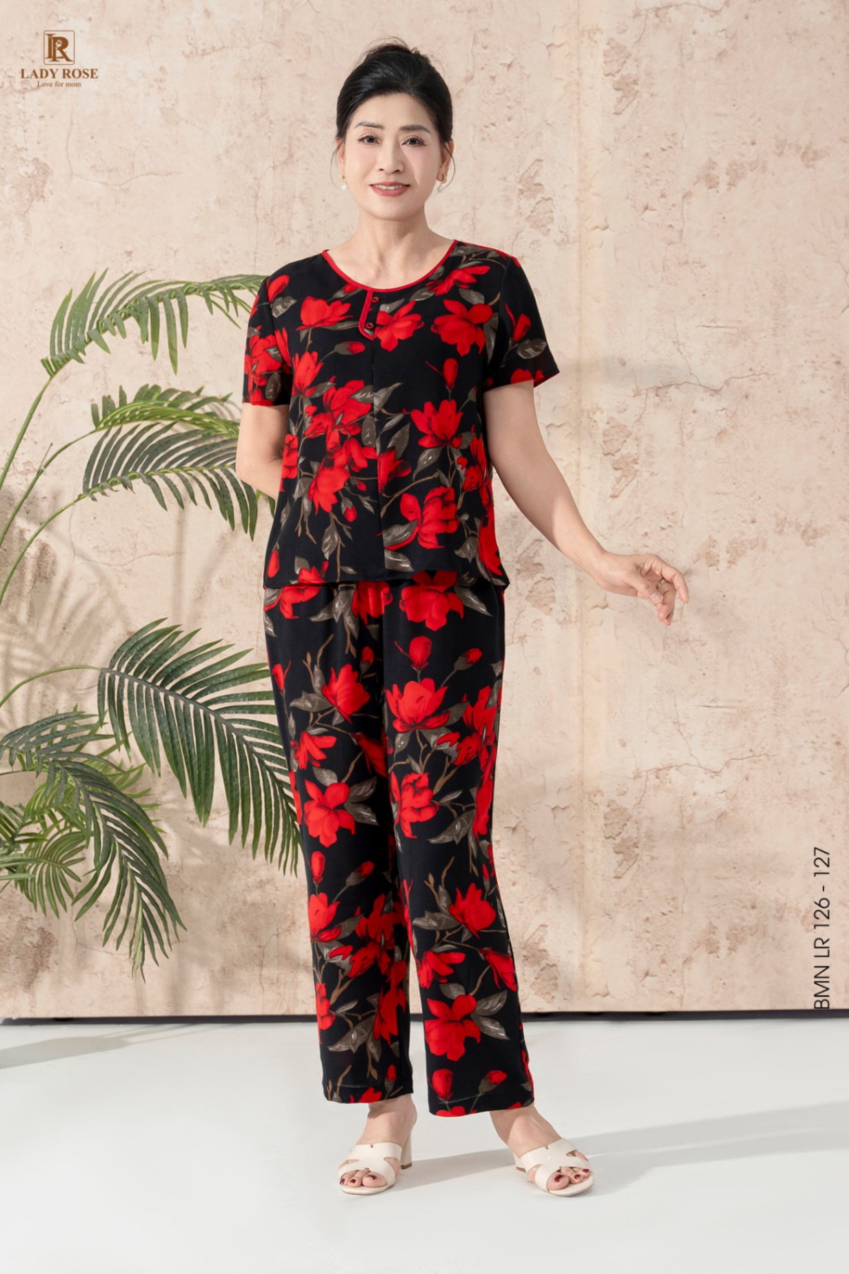 Bộ mặc nhà áo tay cộc quần dài ống suông chất liệu đũi hàn 25S12BMNLR126+127-2