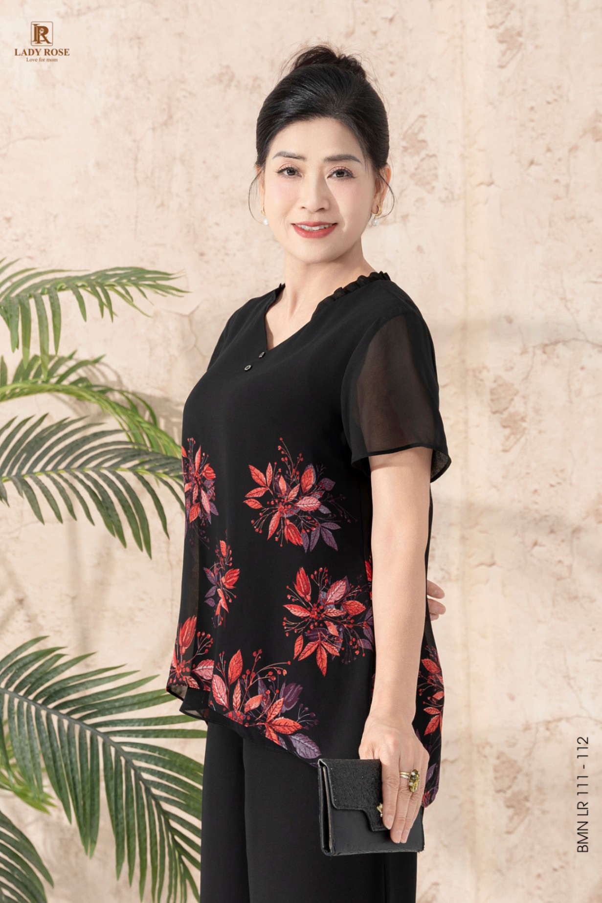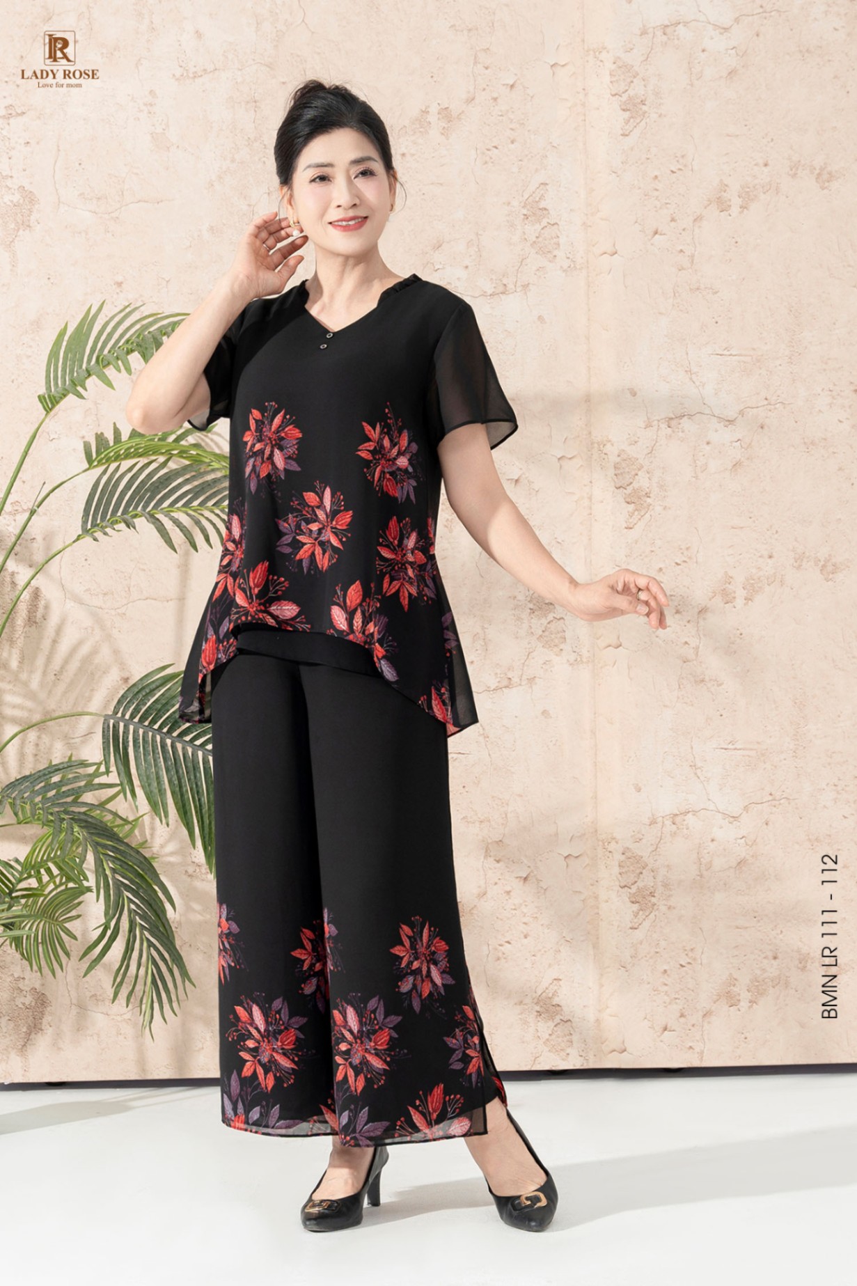 Bộ mặc nhà áo tay cộc quần ống suông chất liệu chiffon 25S52BMNLR111+112-1