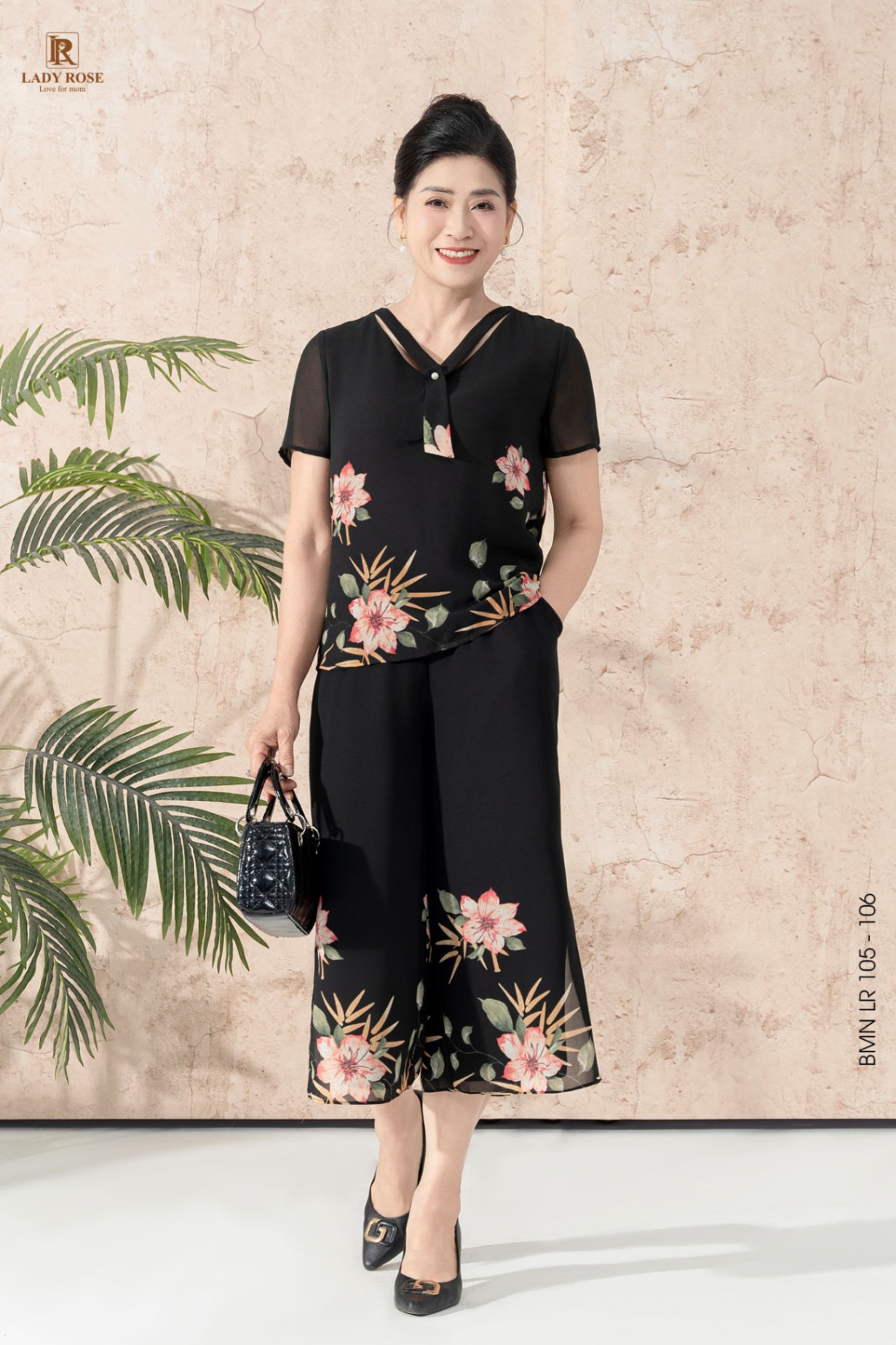 Bộ mặc nhà áo tay ngắn quần lửng ống suông chất liệu chiffon 25S16BMNLR105+106-3