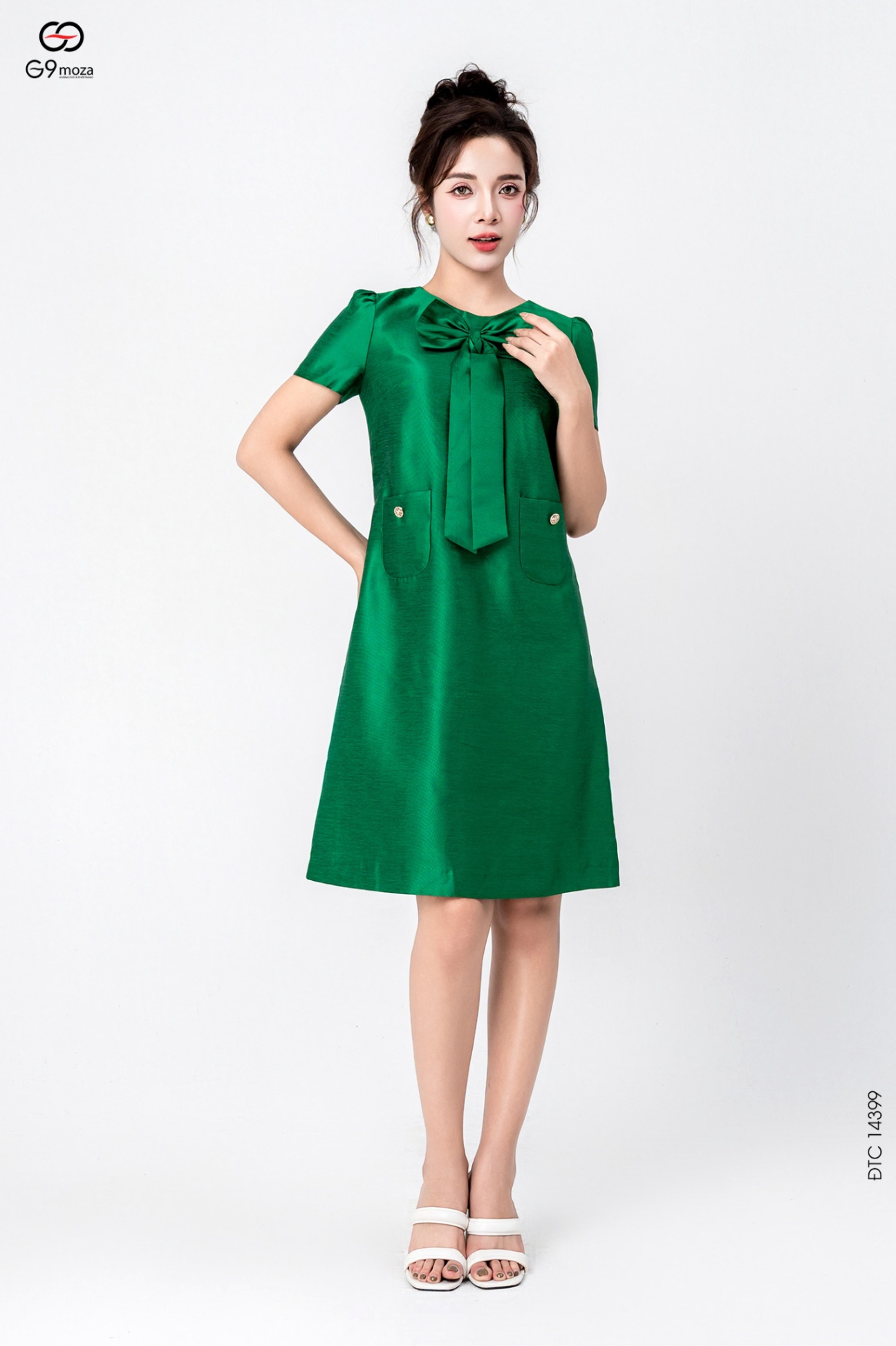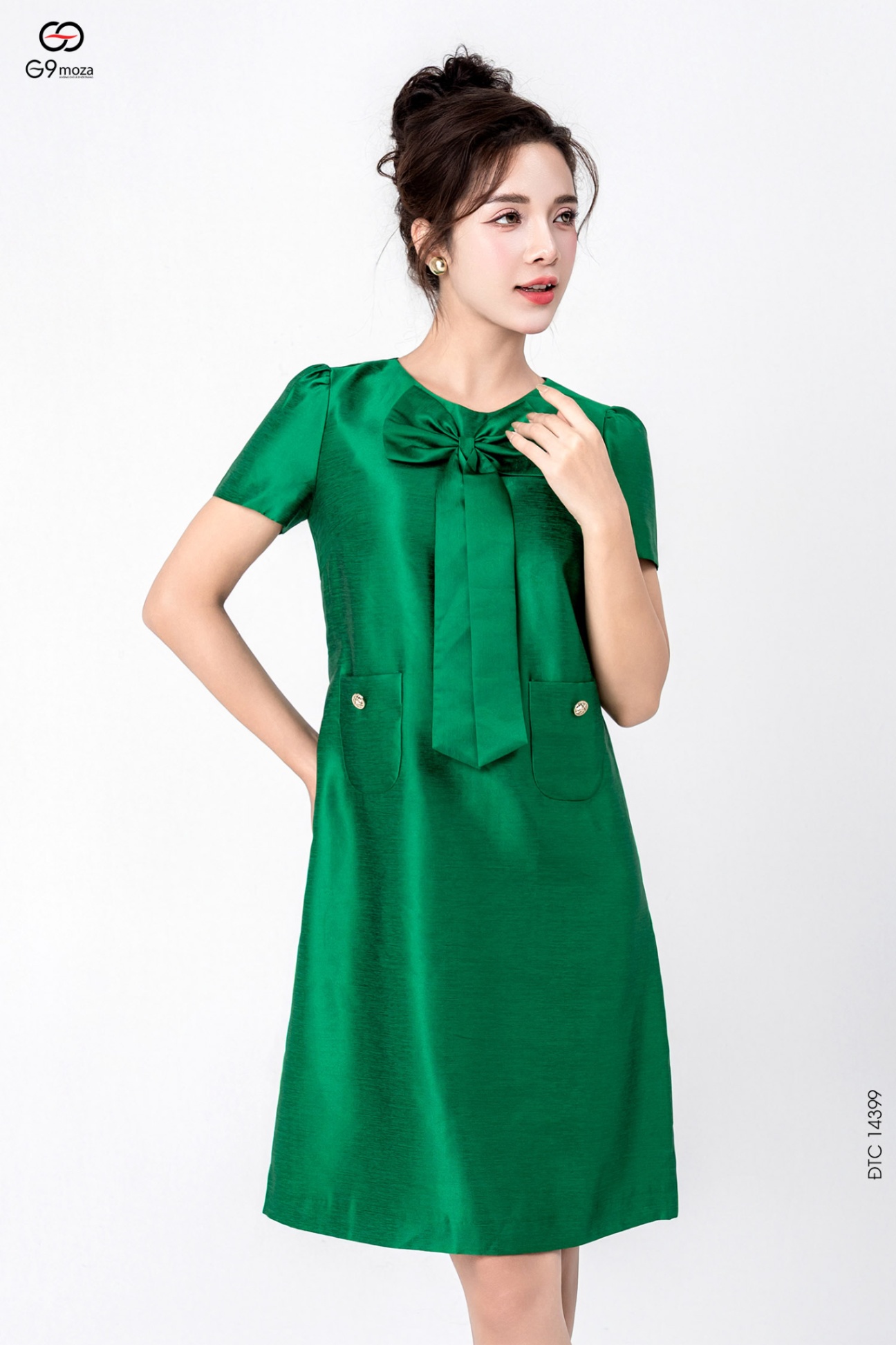 Đầm tay cộc dáng suông phối nơ 25S11ĐTCS14399-2