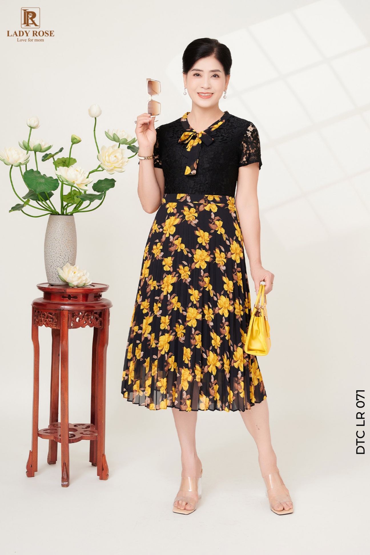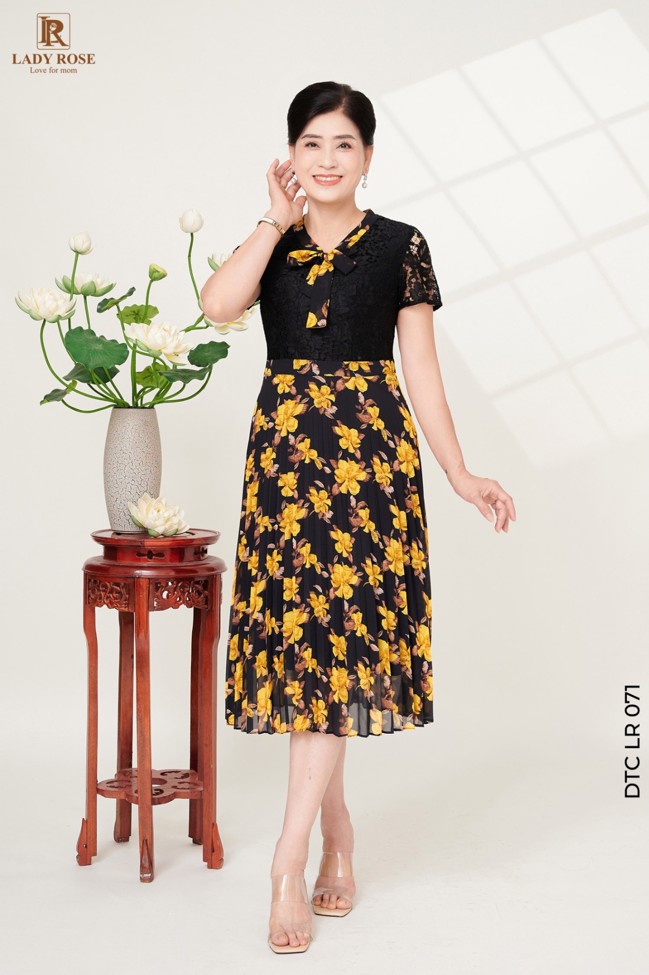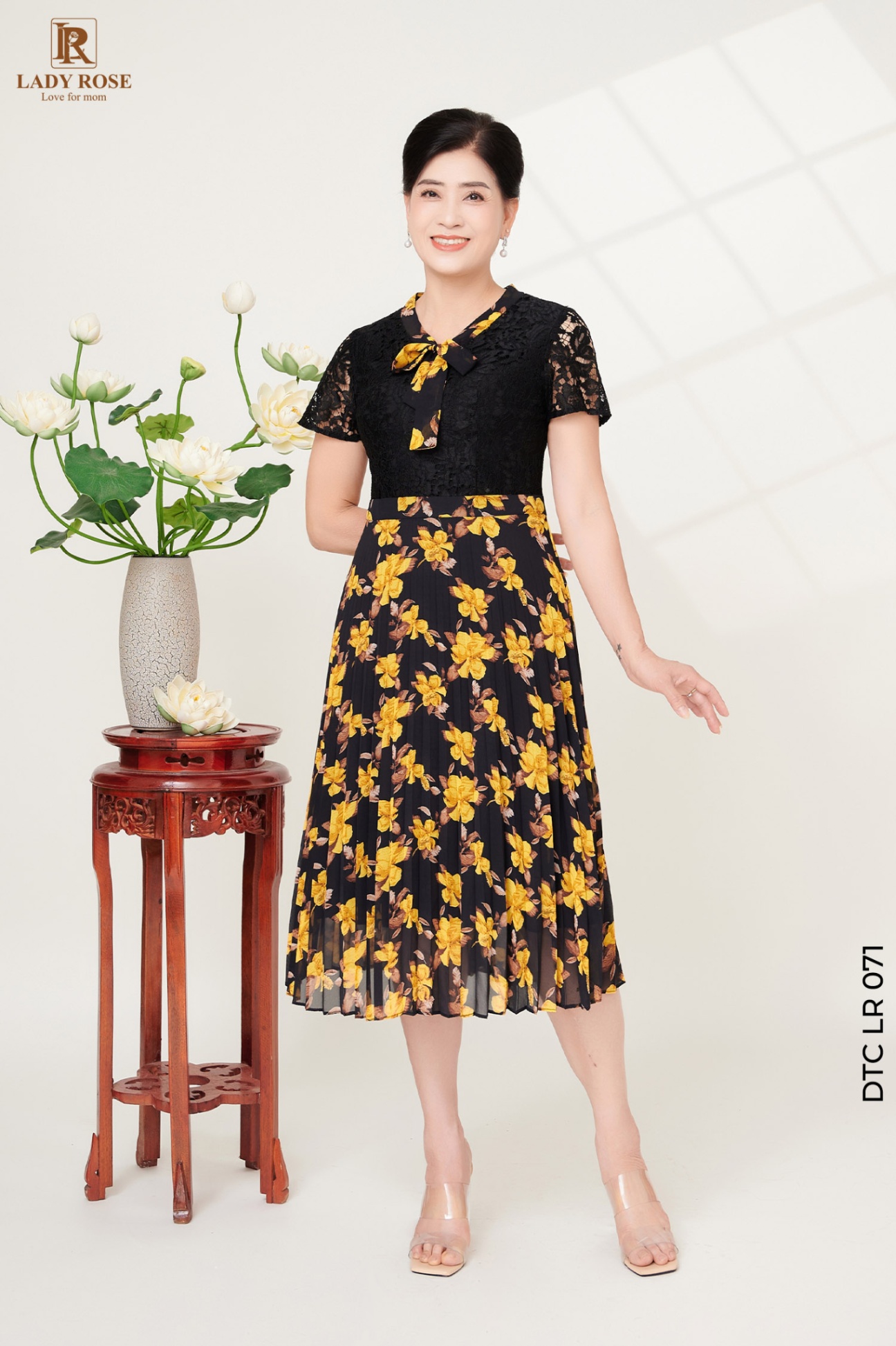 Đầm tay ngắn dáng xòe chất liệu chiffon phối ren 24S17ĐTCLR071-2