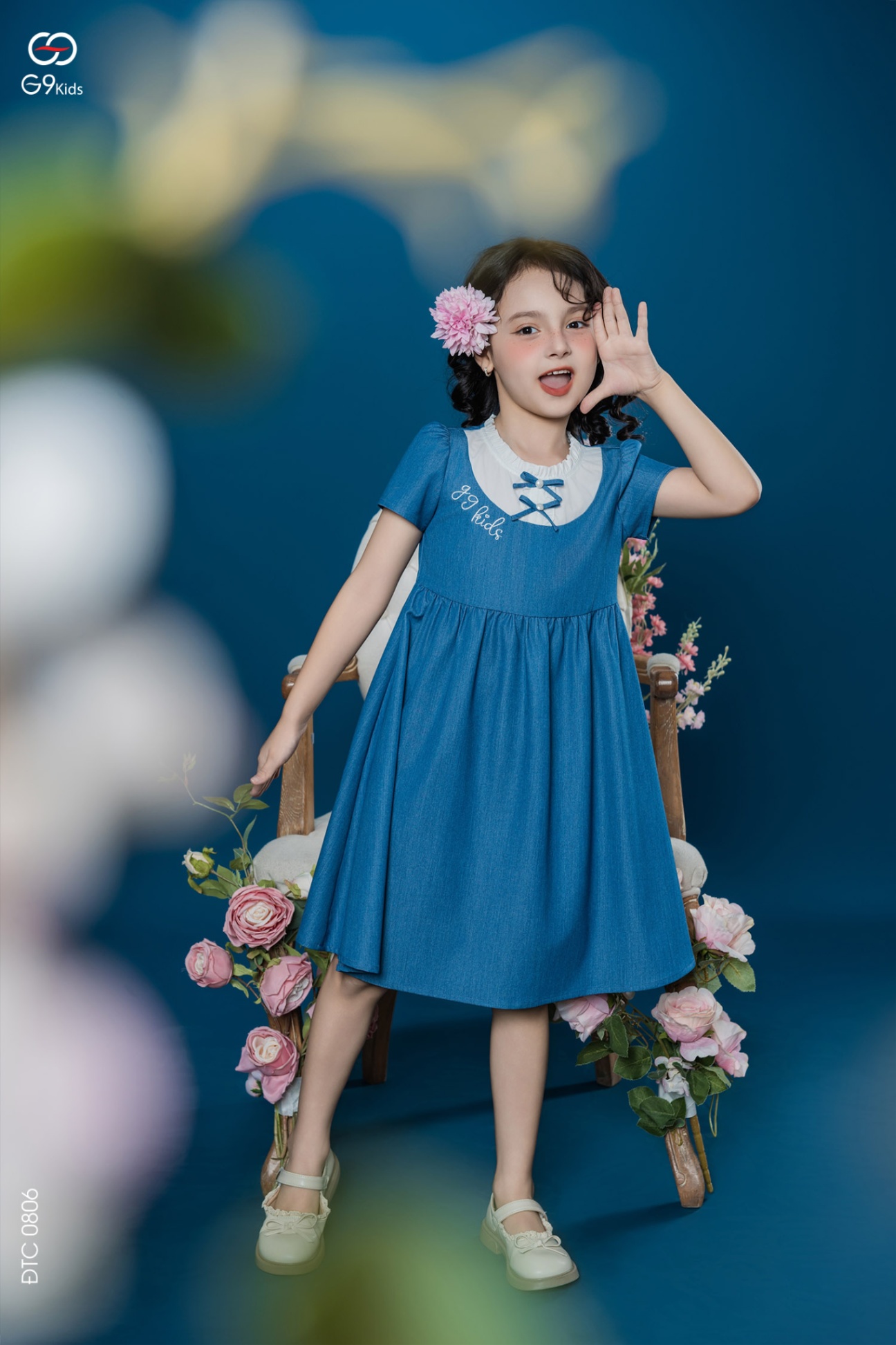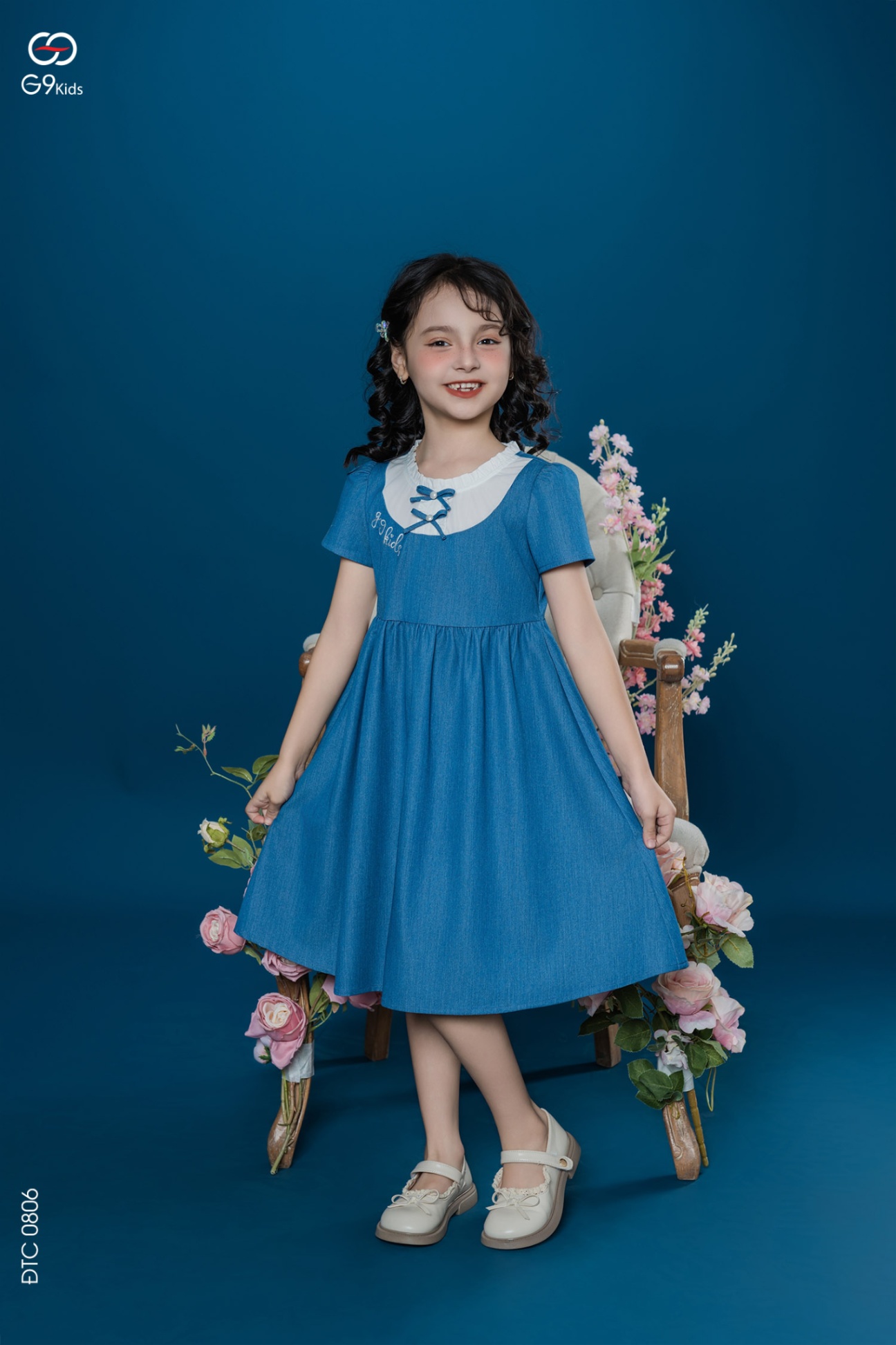 Váy bé gái tay cộc phối nơ chất liệu jeans lụa 25S16BĐTC0806-2