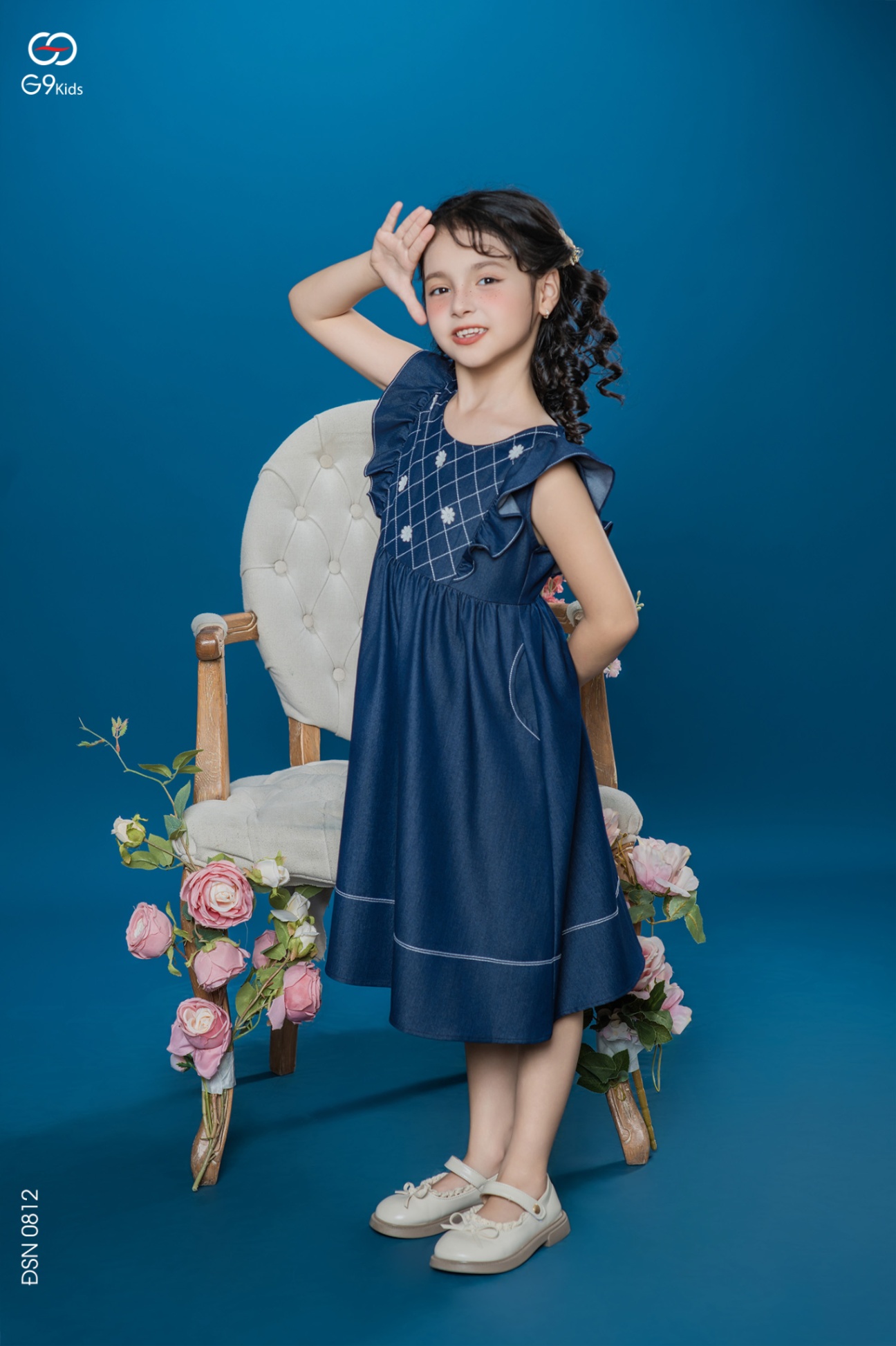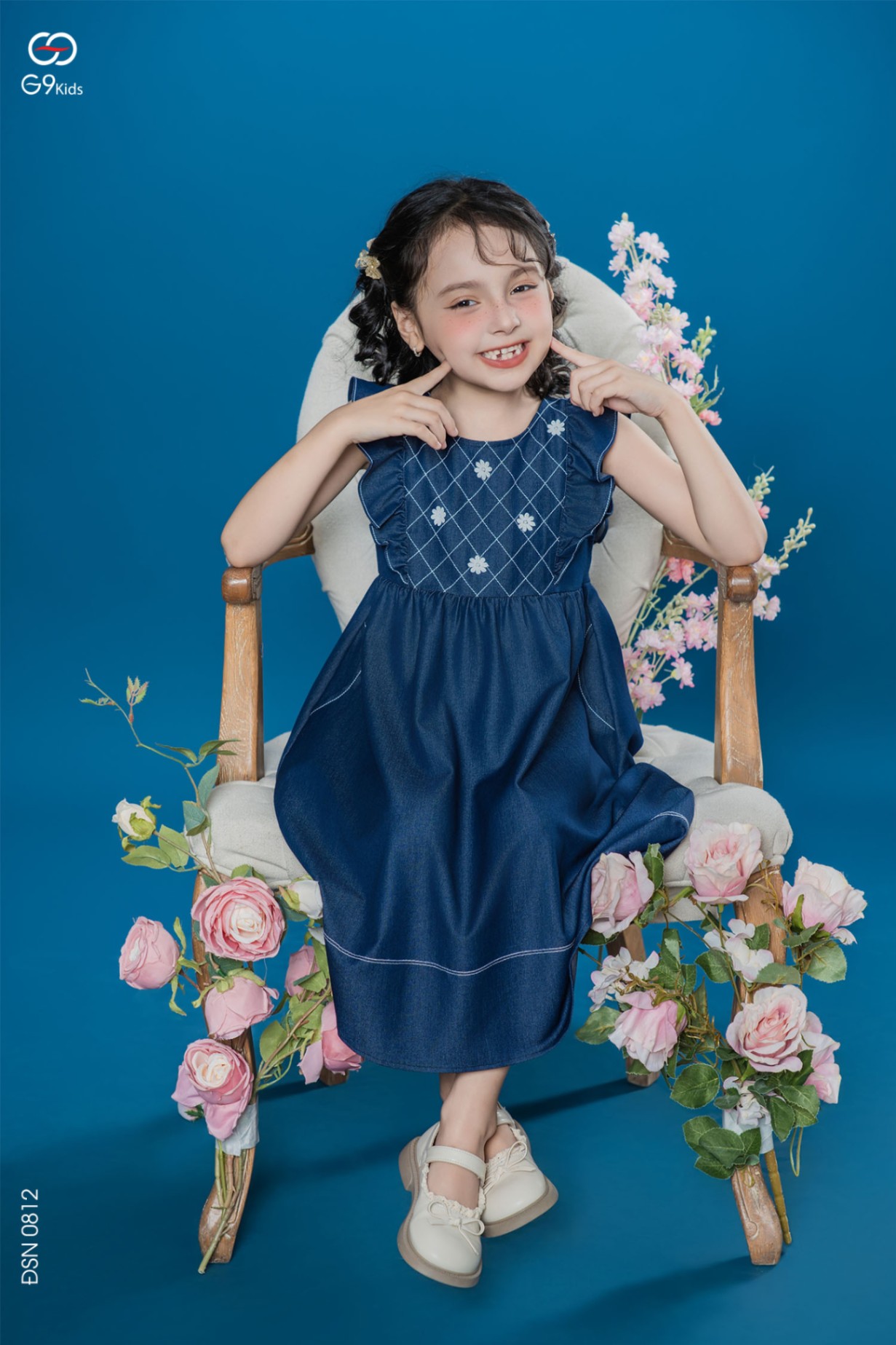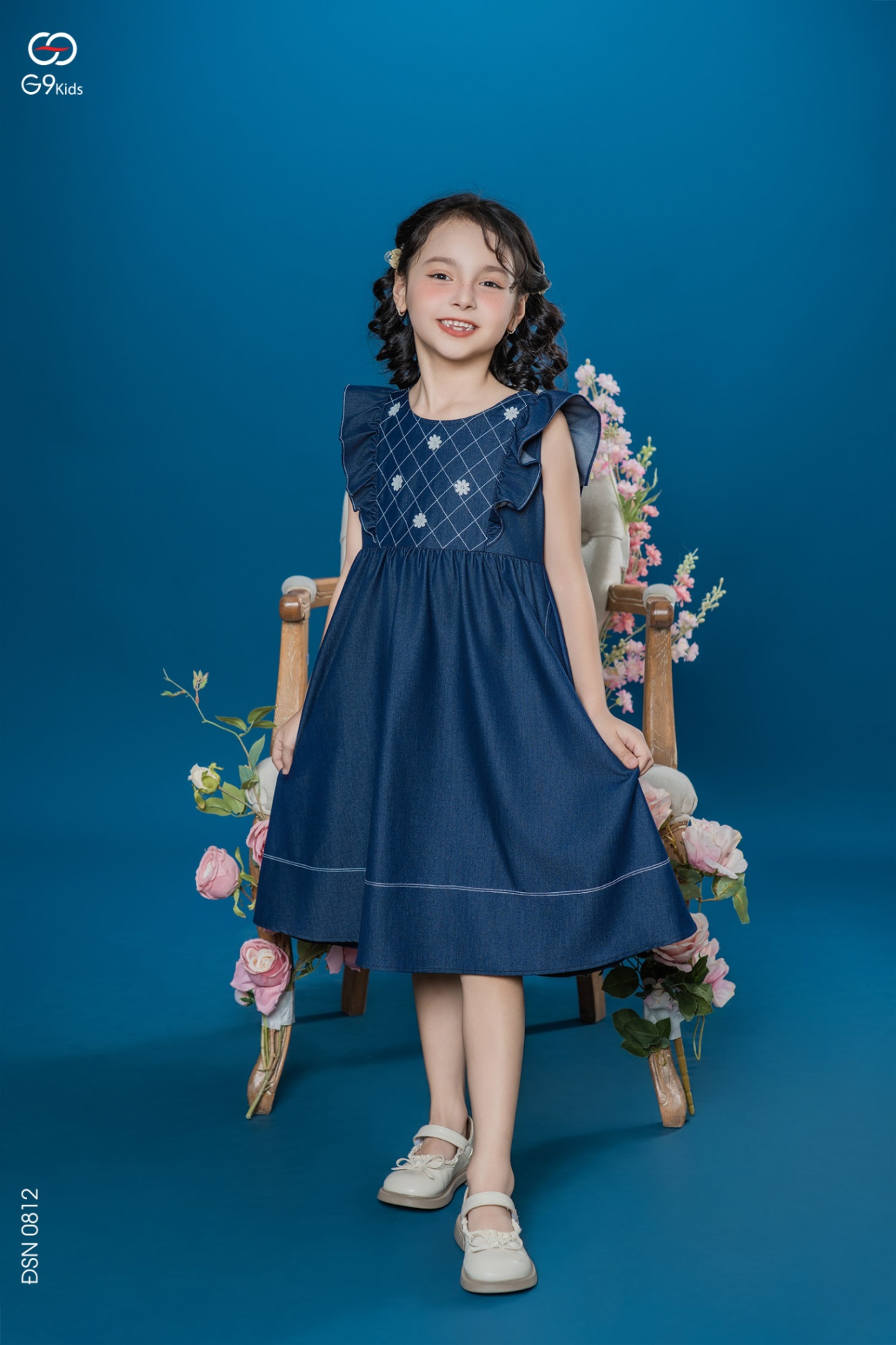 Váy liền sát nách phối bèo chất liệu jeans lụa 25S57BĐSN0812-2