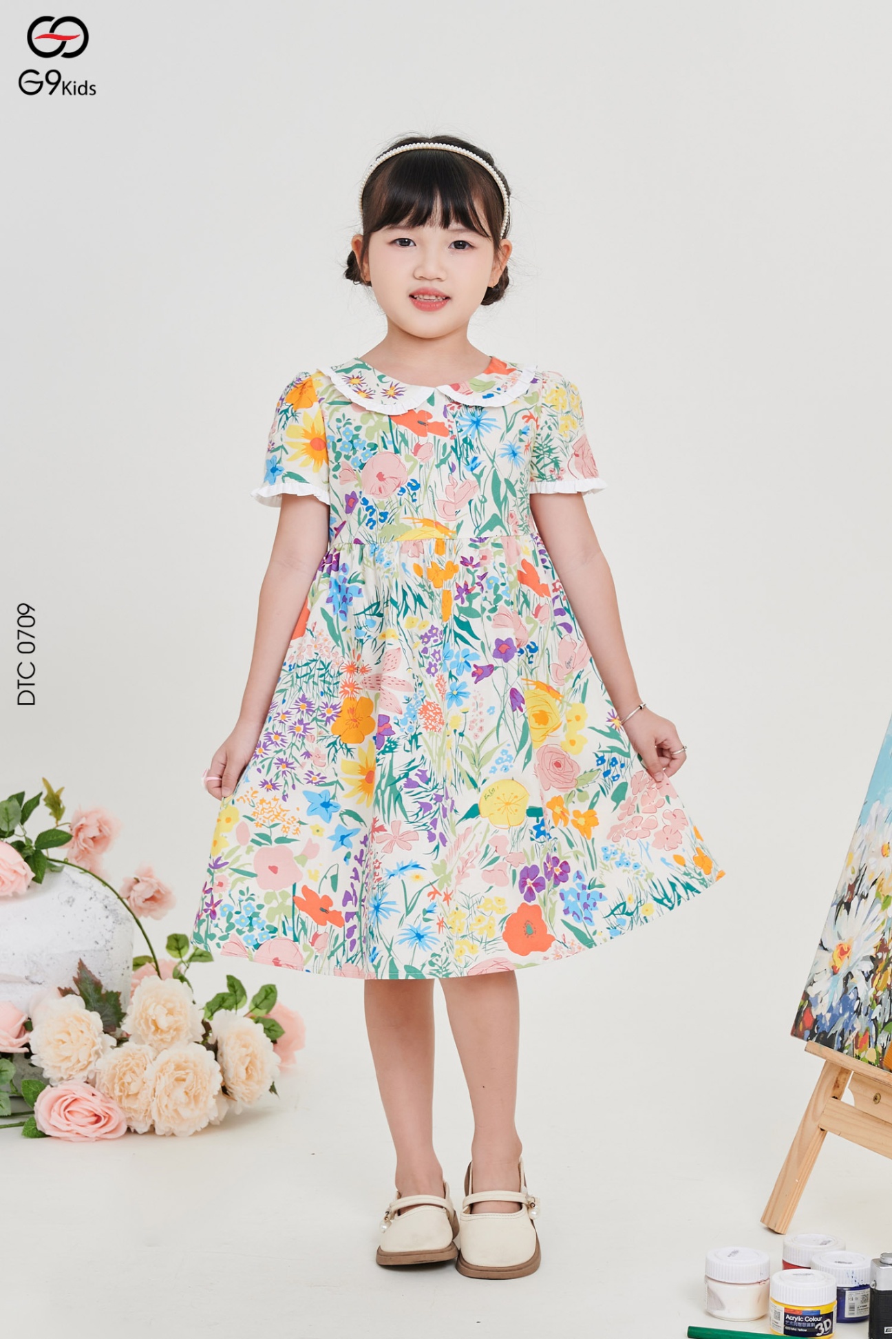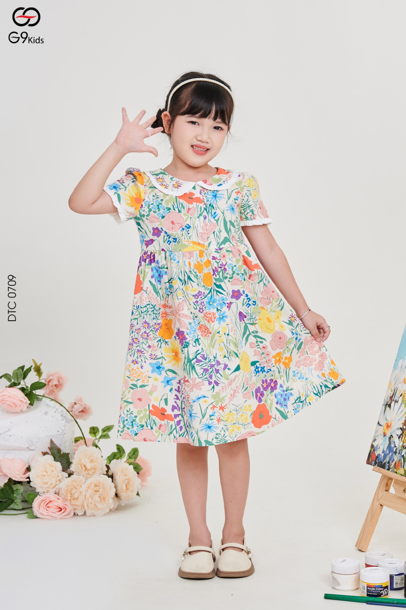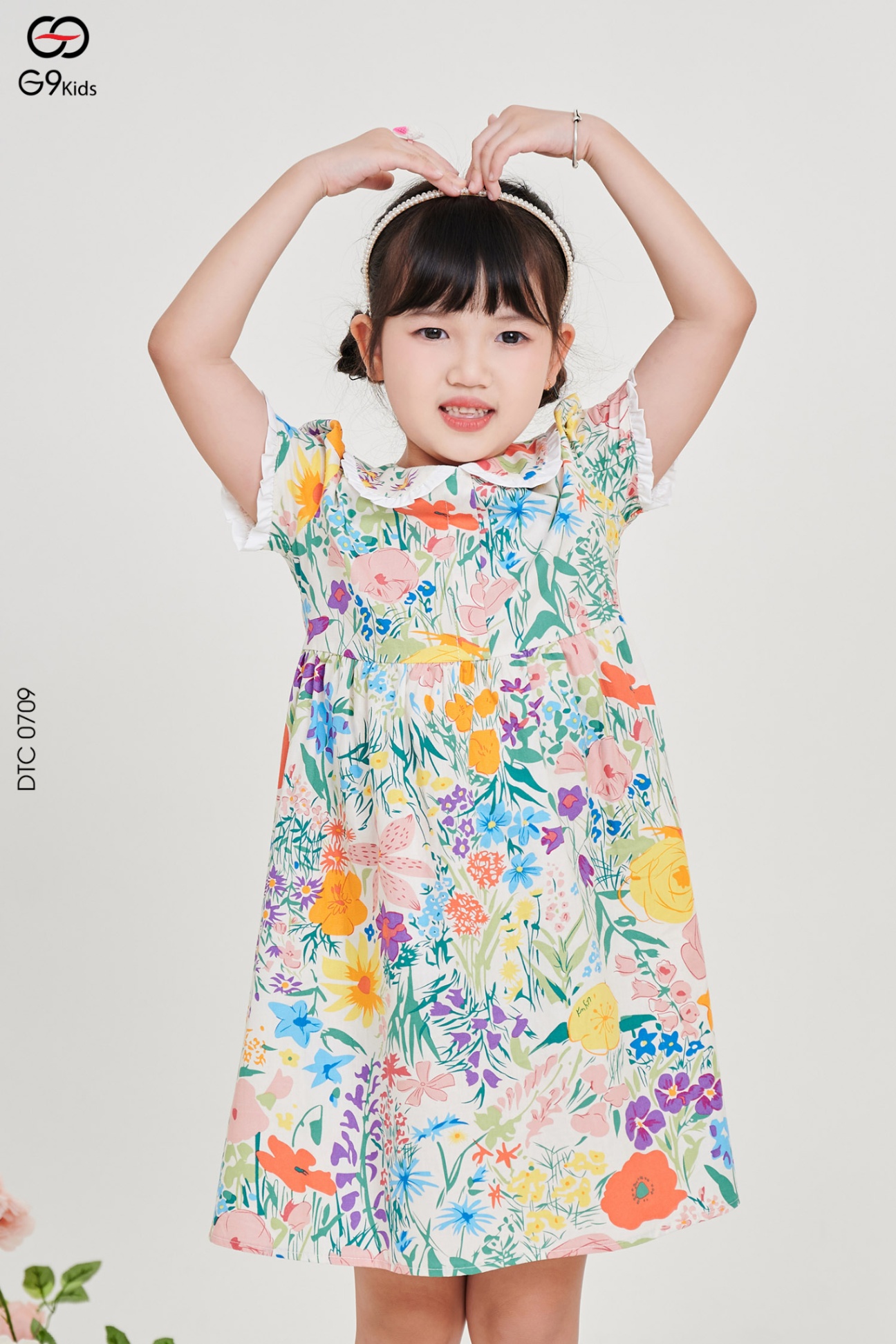 Váy liền tay ngắn họa tiết tropical chất liệu thô mềm 24S11BĐTC0709-1