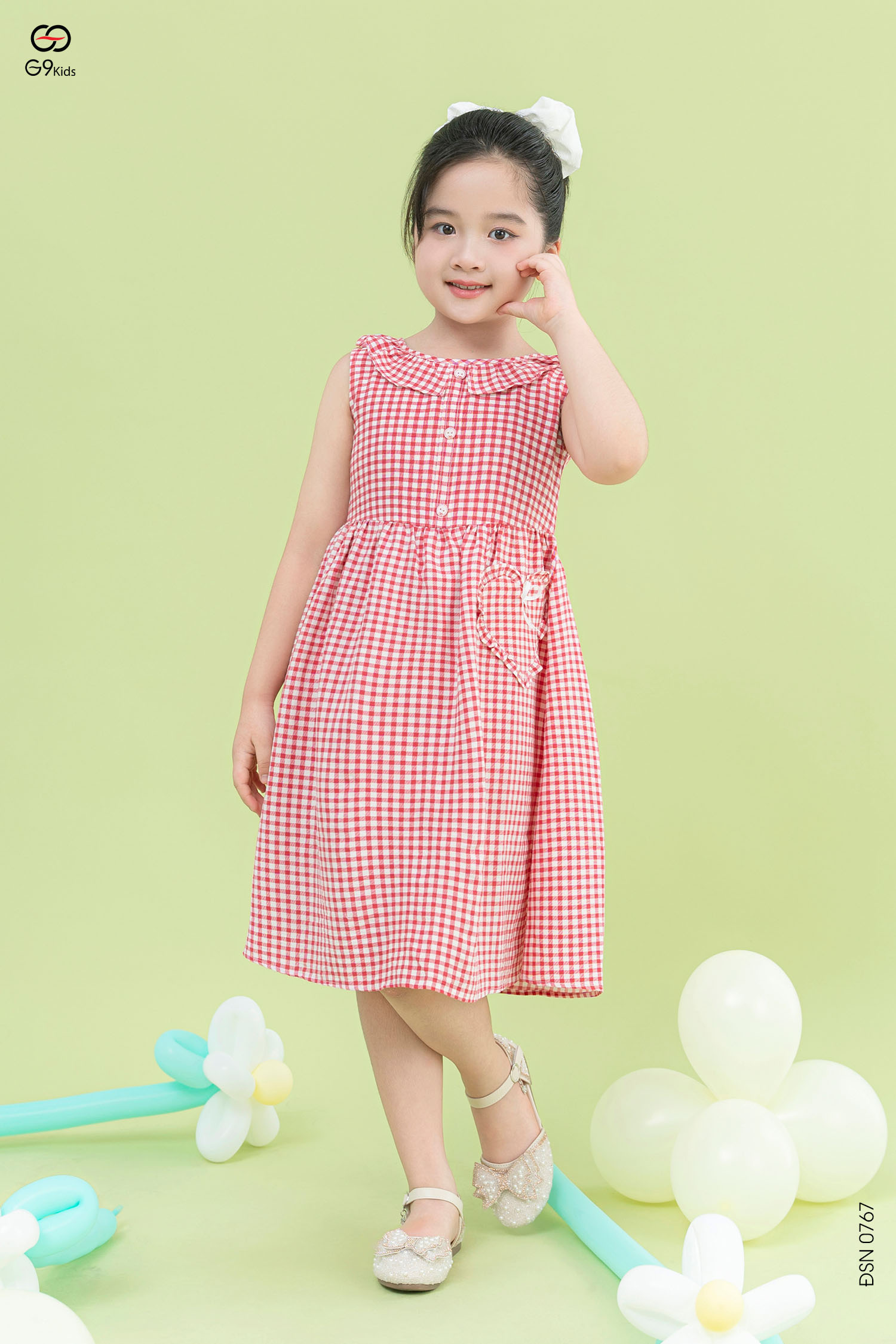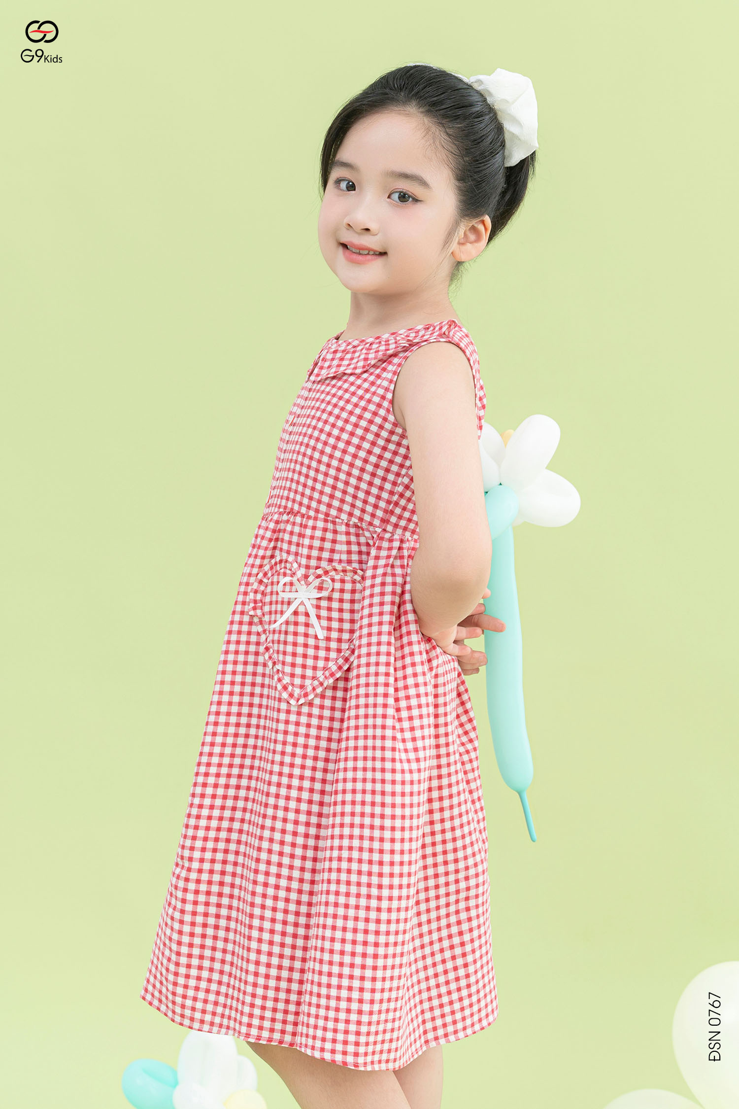 Váy sát nách bé gái chất liệu thô kẻ caro phối túi xinh xắn 25S12BĐSN0767-2
