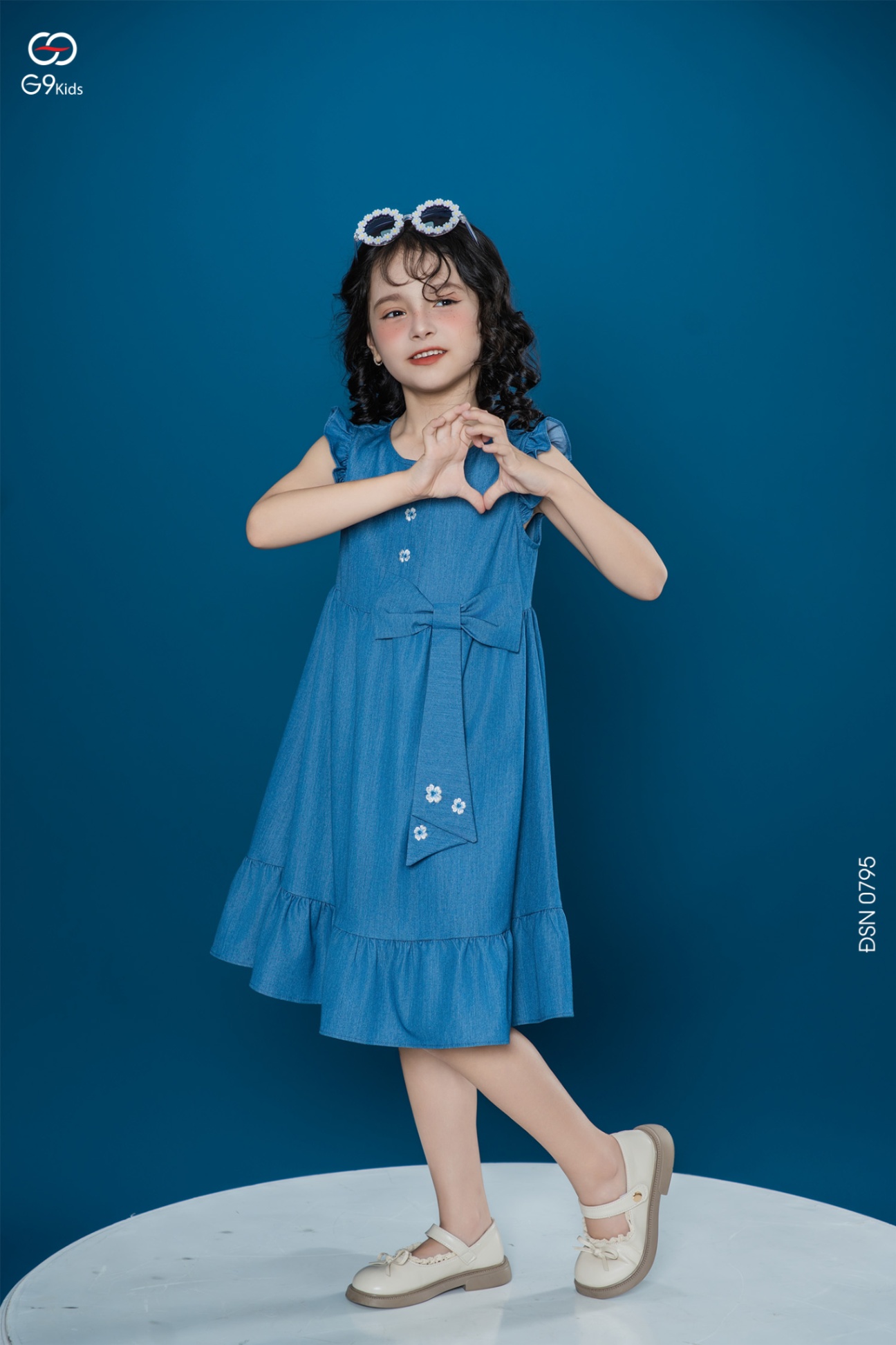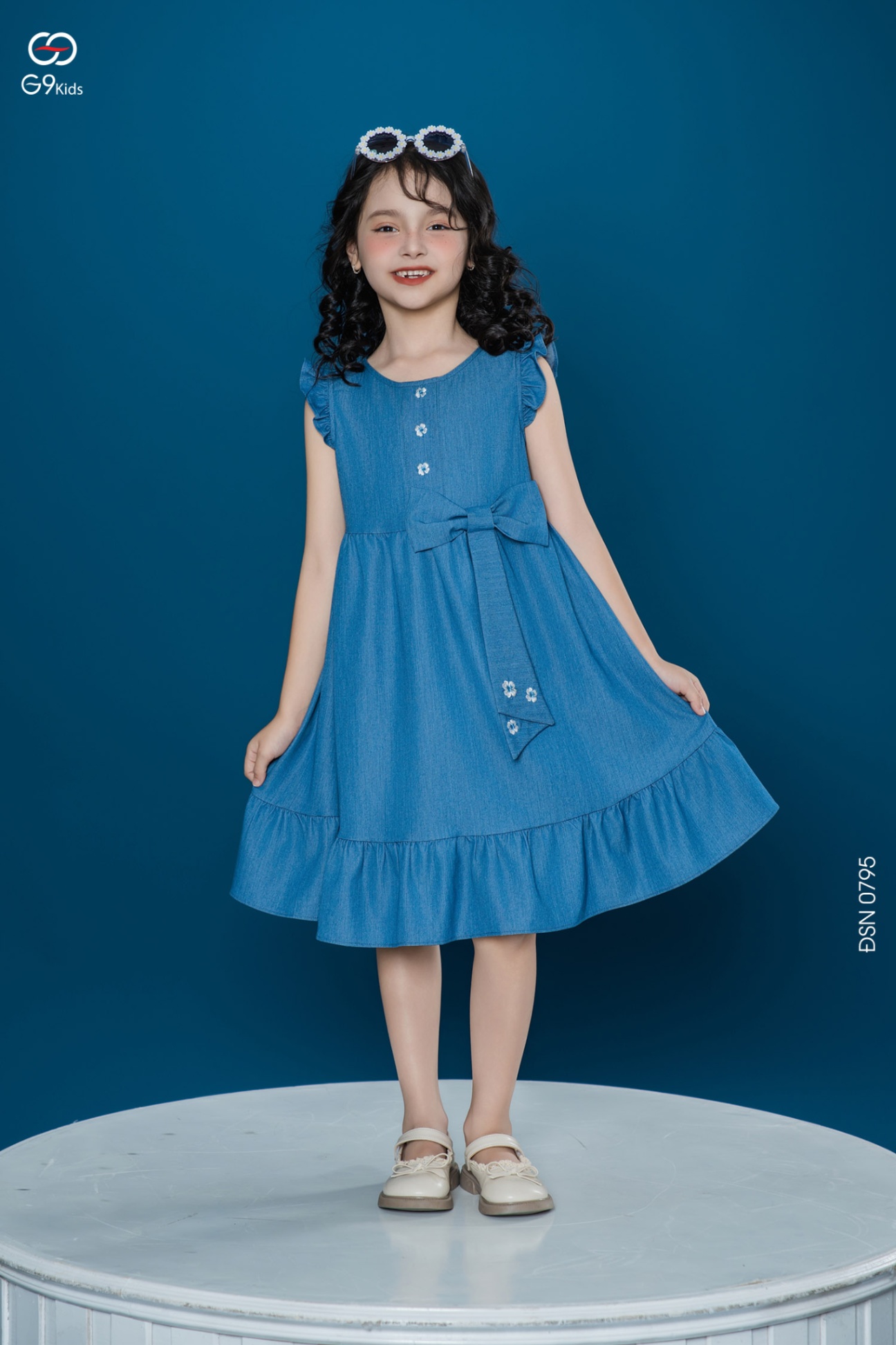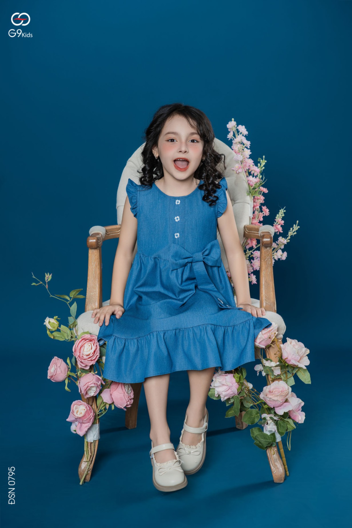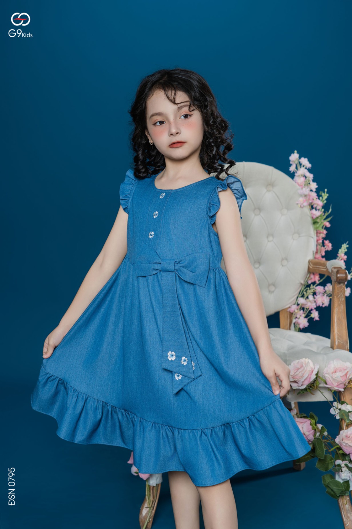 Váy sát nách cho bé gái phối nơ chất liệu jeans lụa 25S12BĐSN0795-1