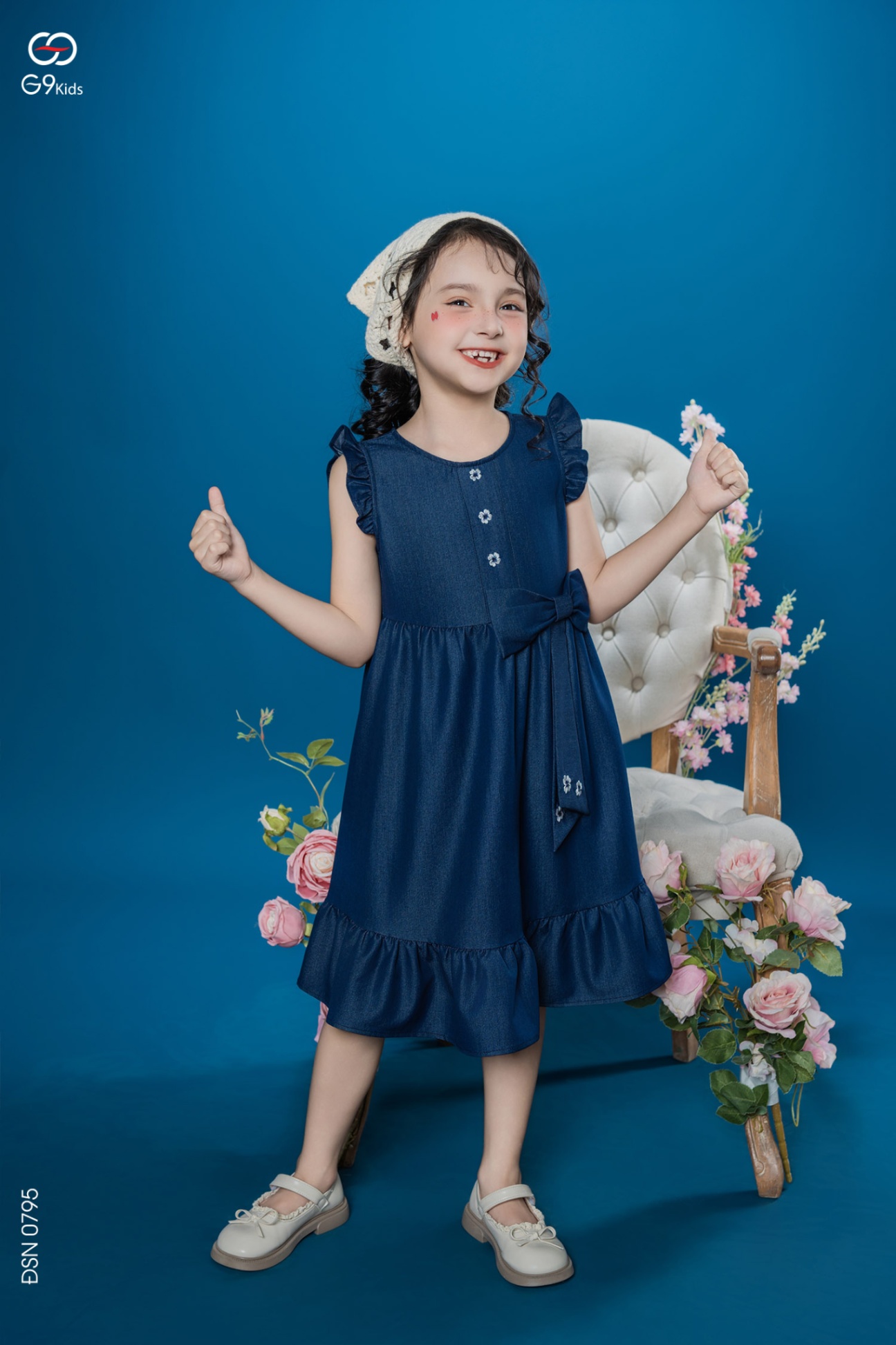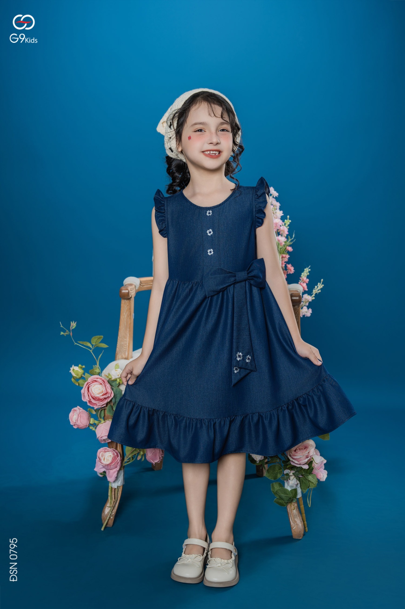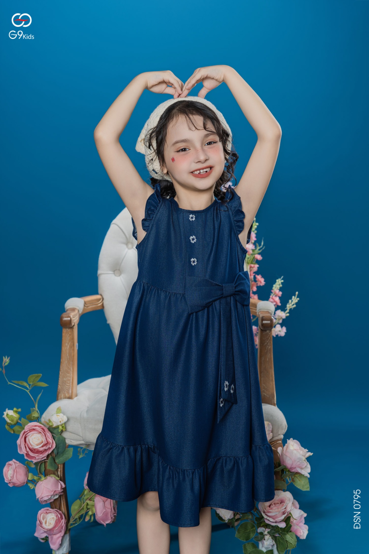 Váy sát nách cho bé gái phối nơ chất liệu jeans lụa 25S12BĐSN0795-2