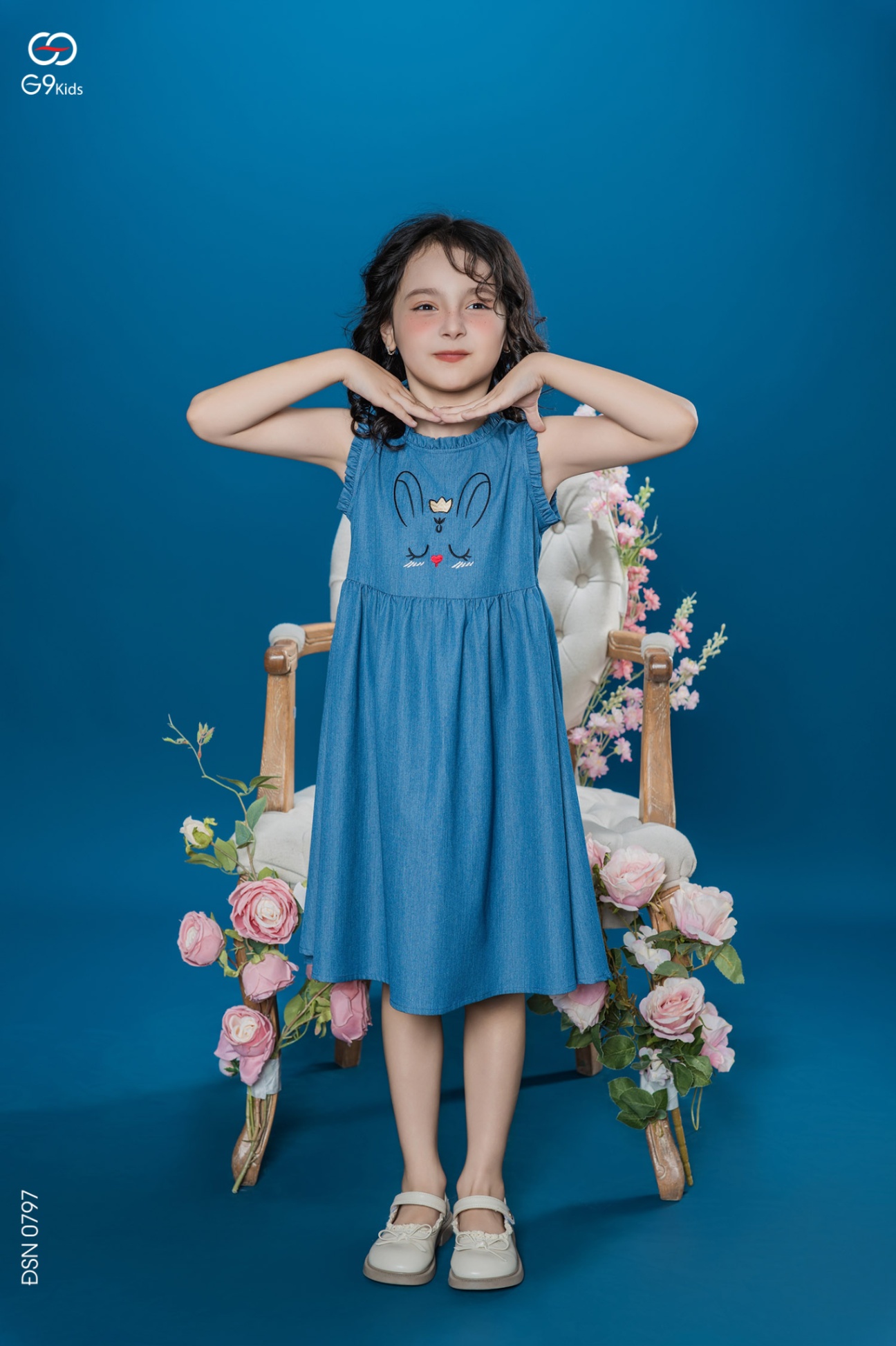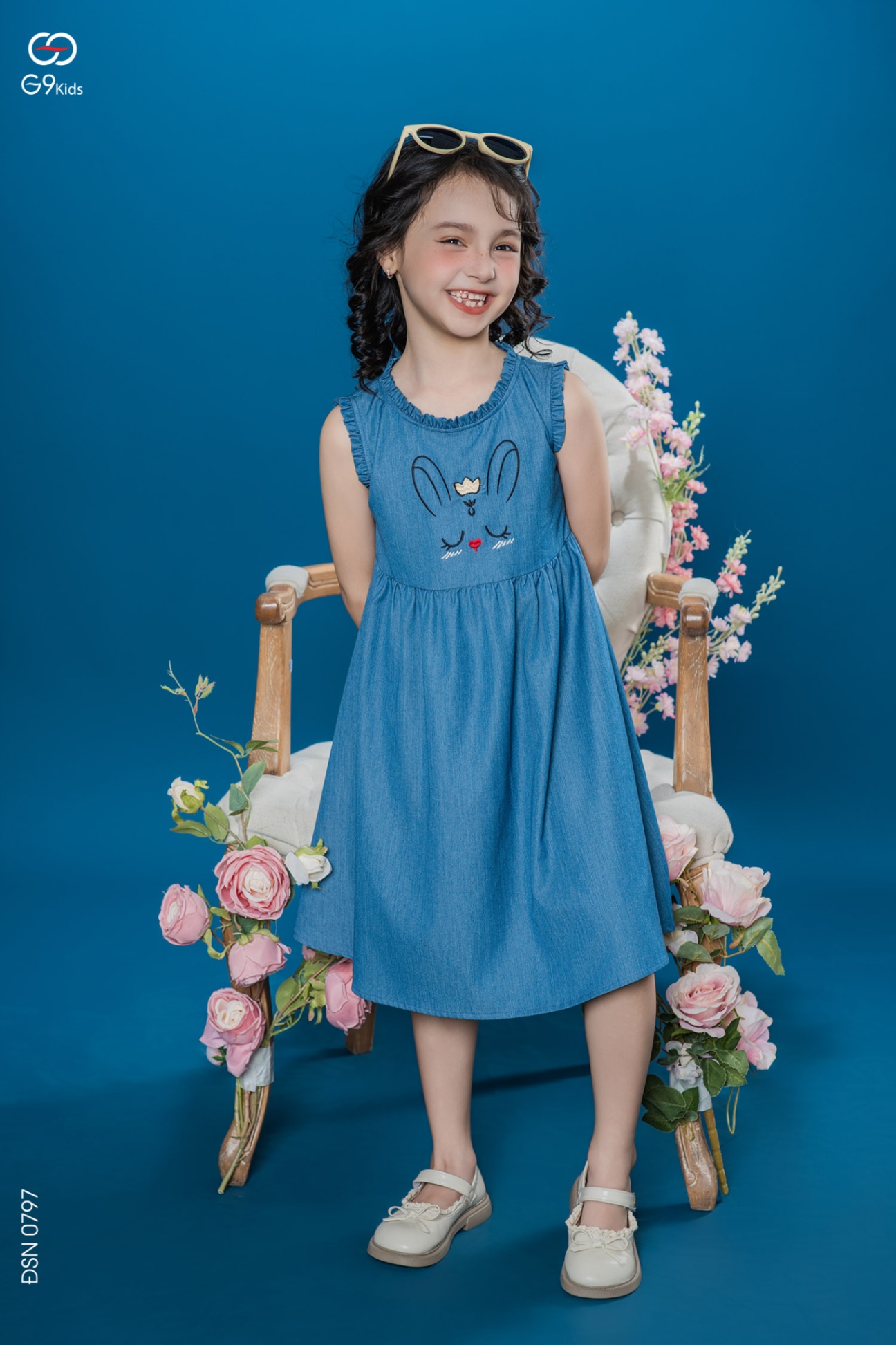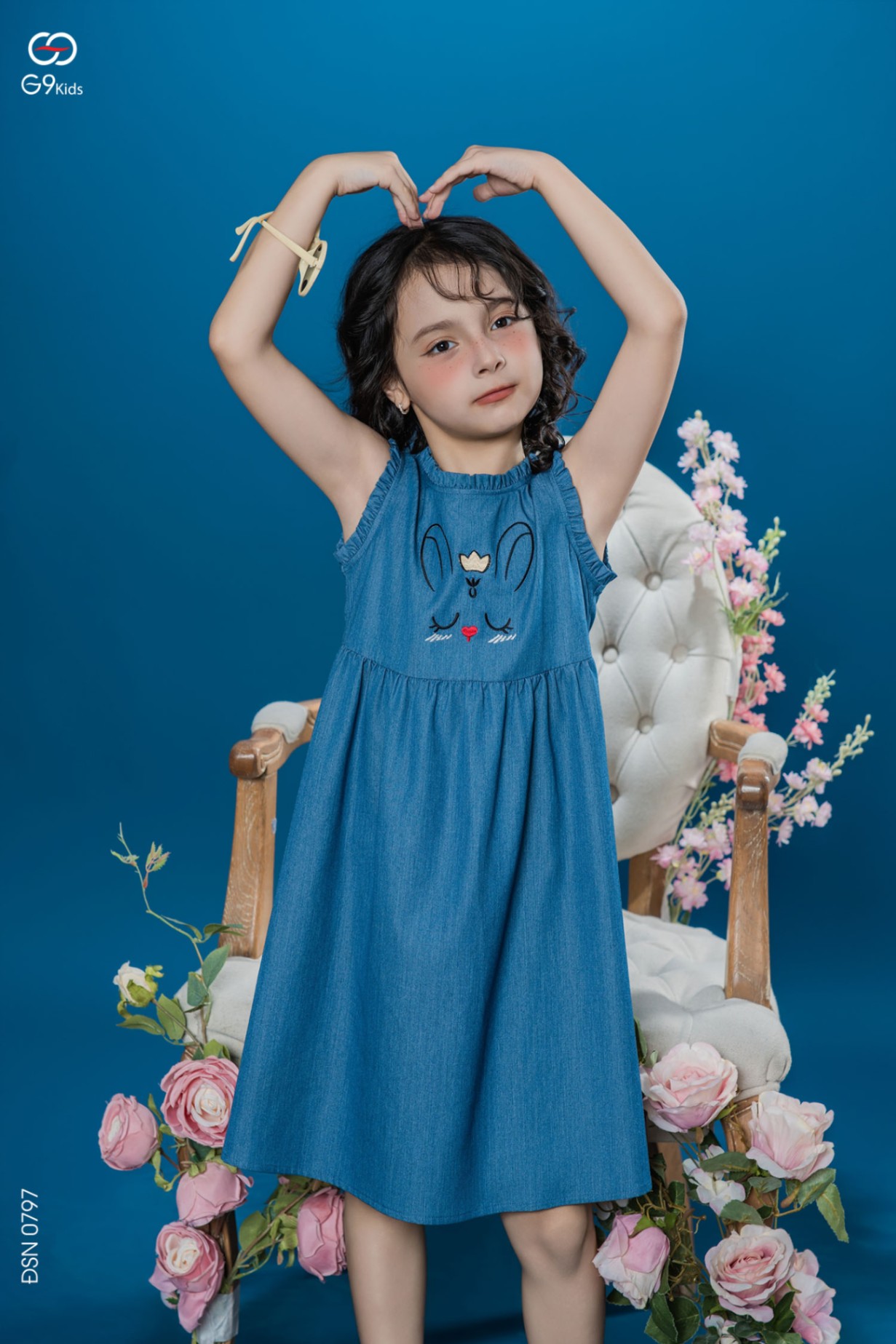 Váy sát nách cho bé gái thêu họa tiết dễ thương chất liệu jeans lụa 25S16BĐSN0797-2