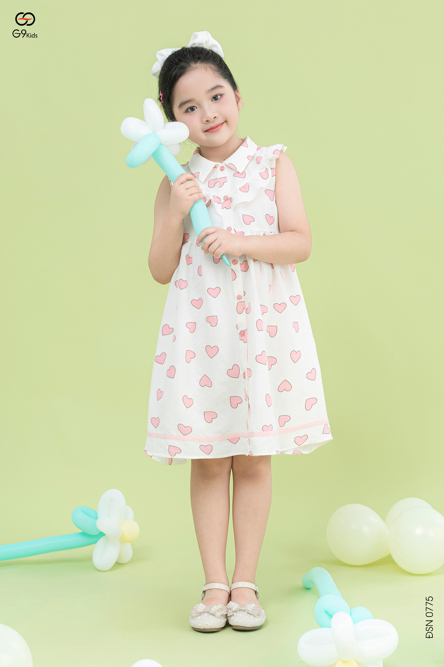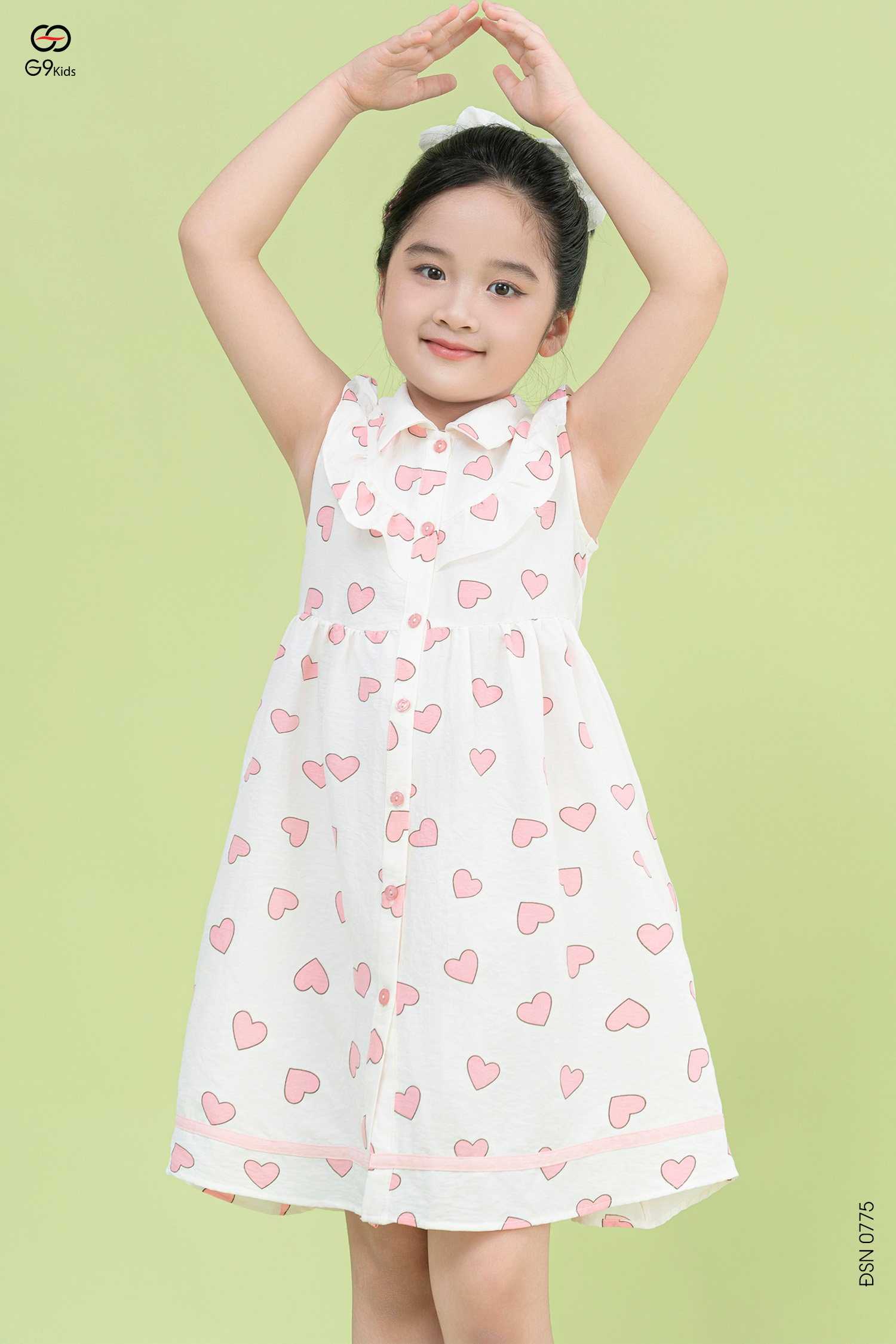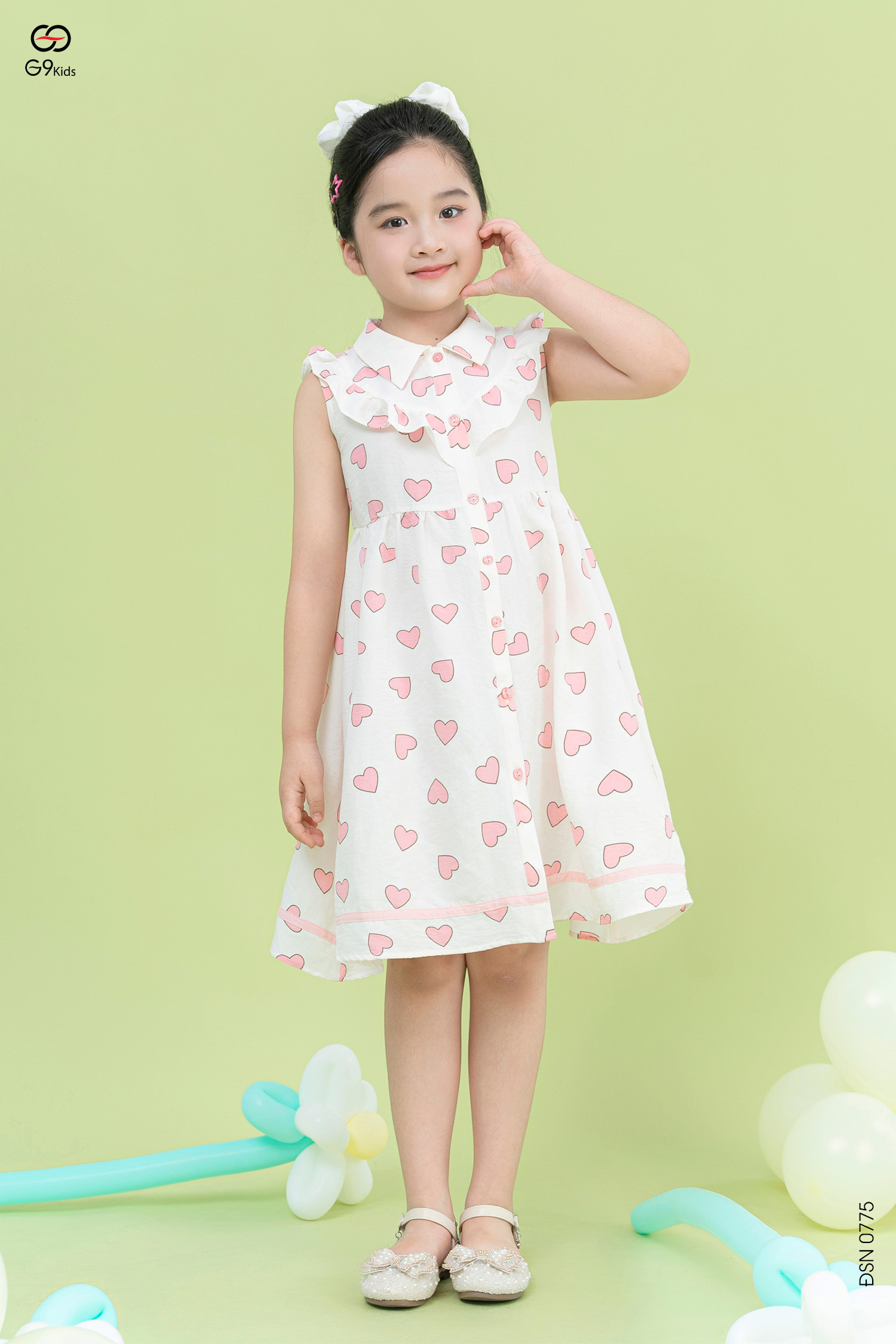 Váy sát nách dáng sơ mi chất liệu thô hàn cho bé gái 25S12BĐSN0775-1