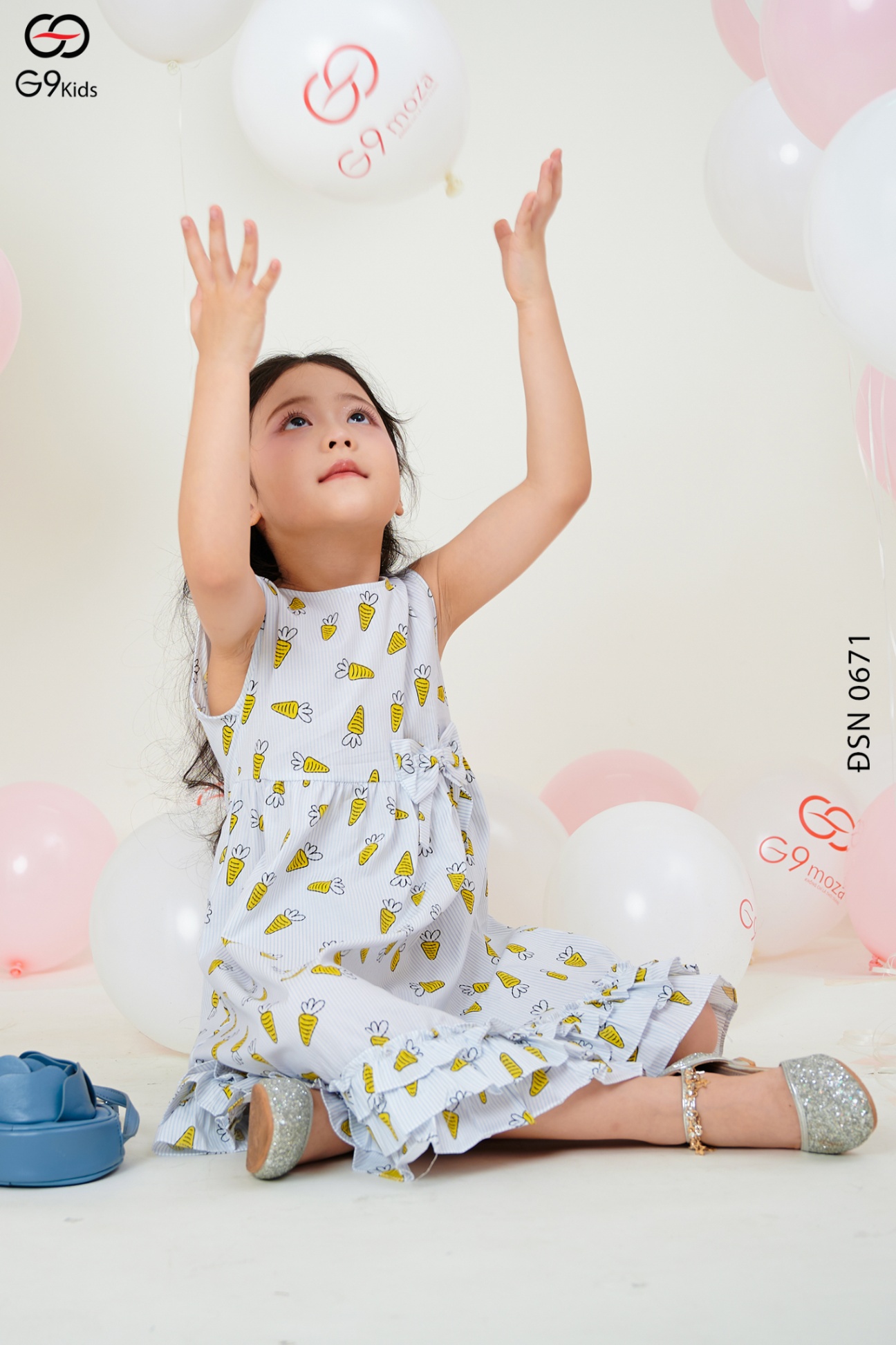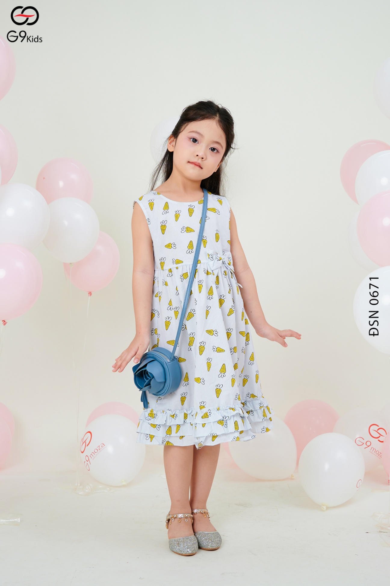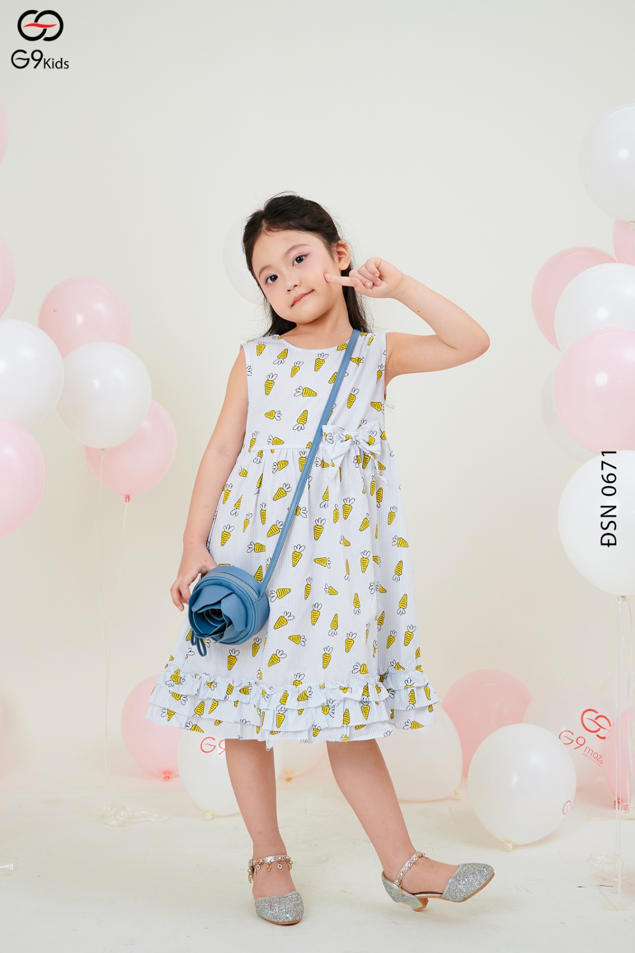 Váy sát nách dáng xòe phối nơ chất liệu thô họa tiết 24S57BĐSN0671-2