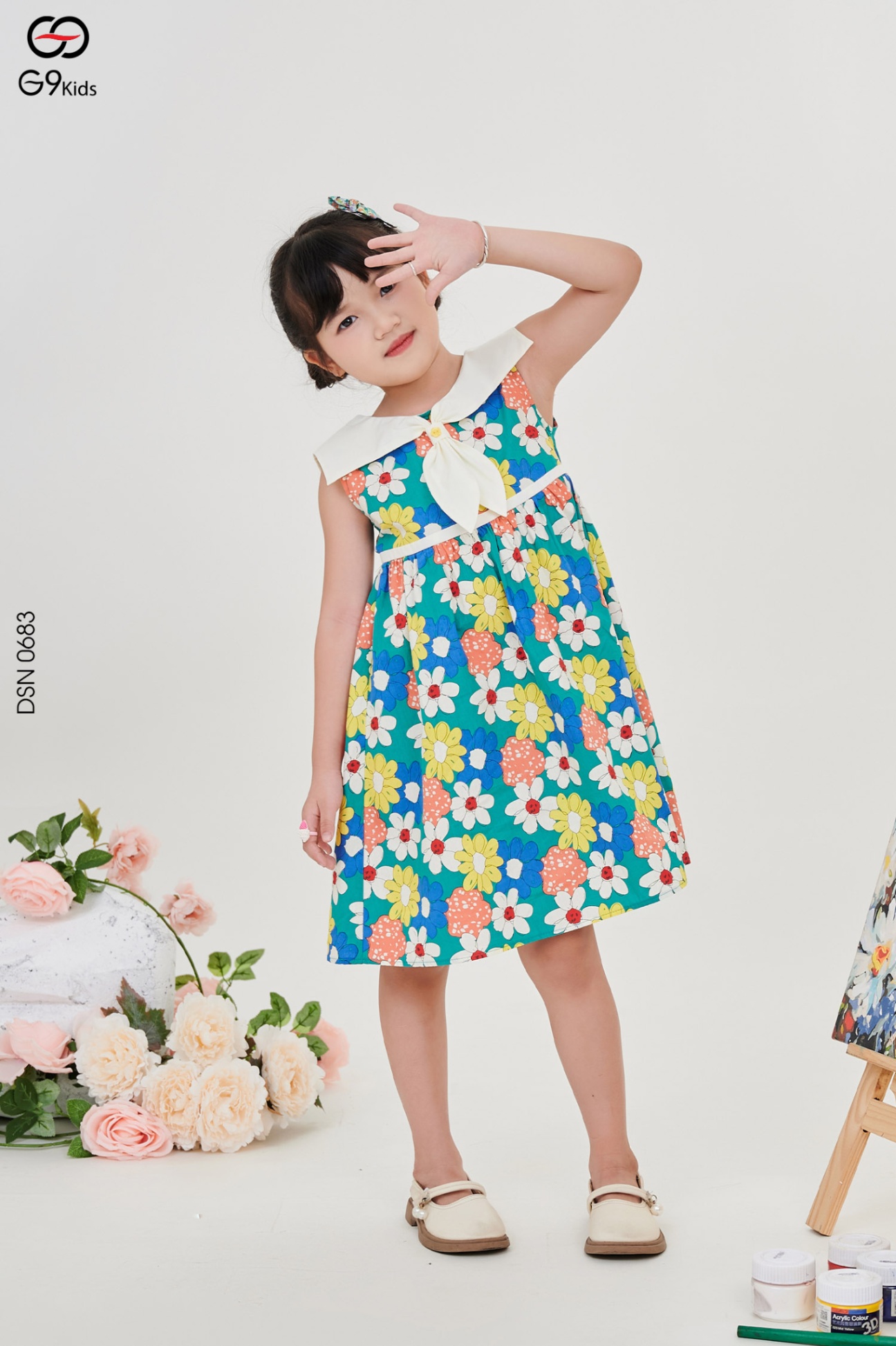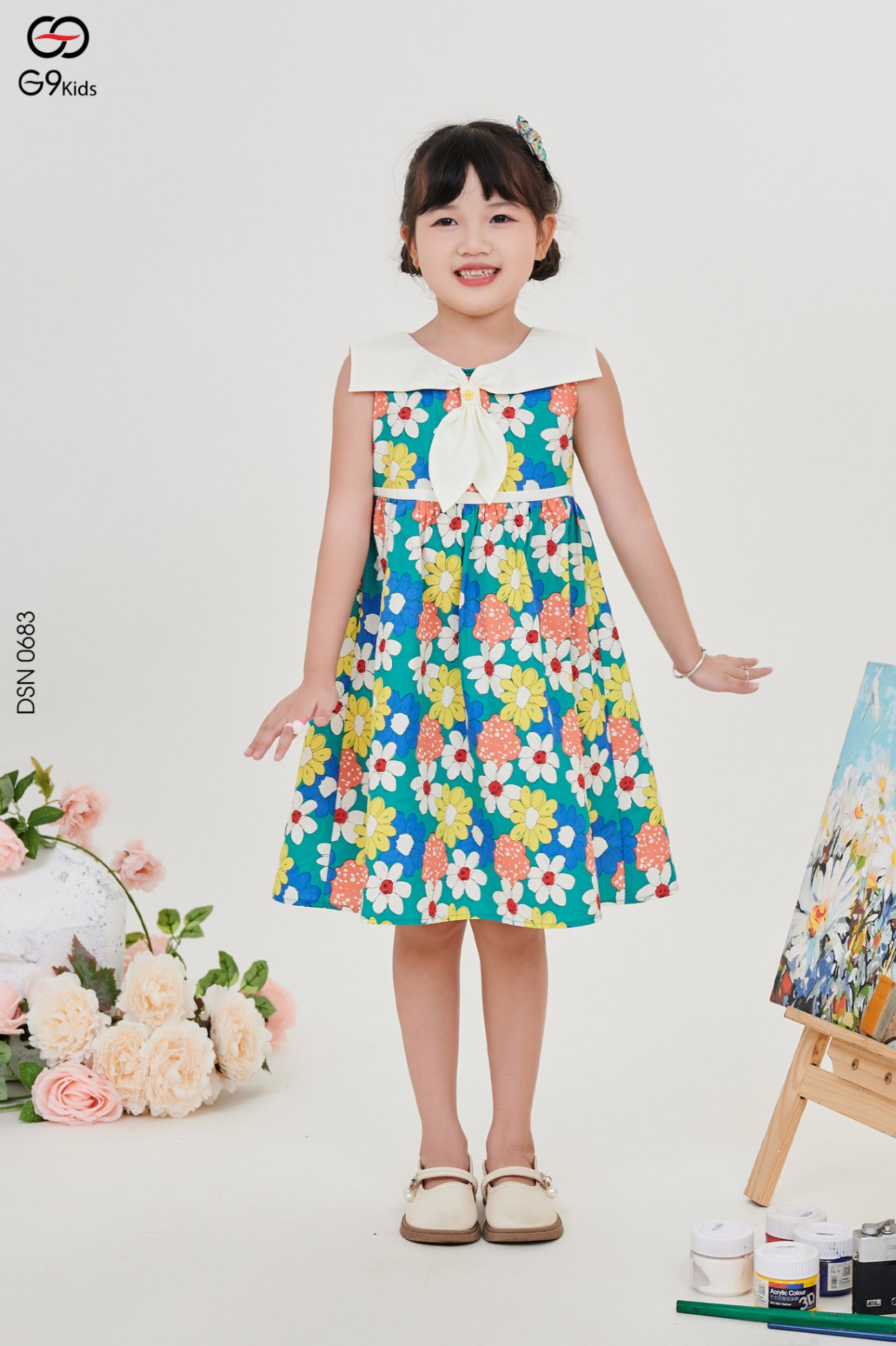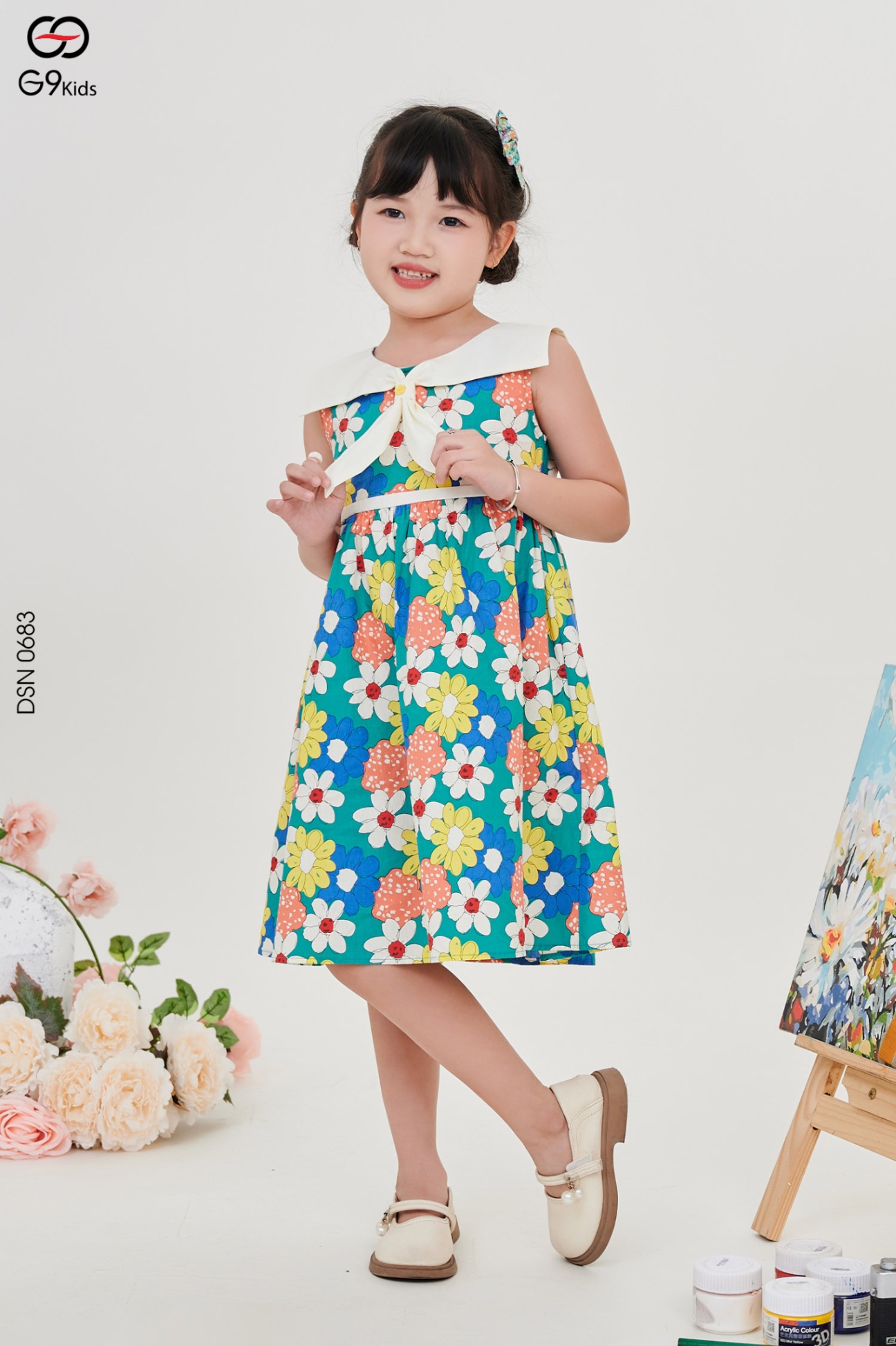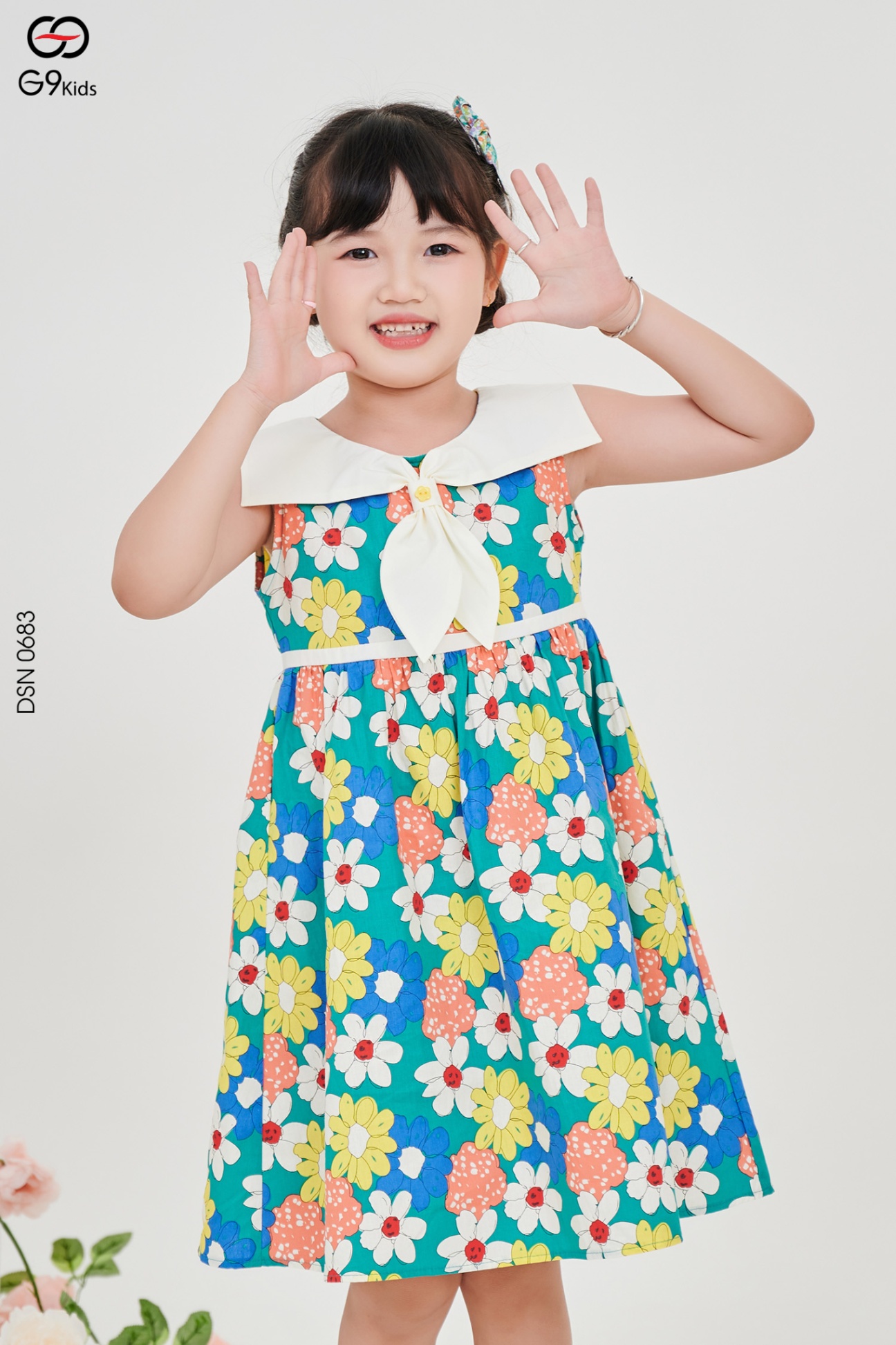 Váy sát nách phối cổ nơ chất liệu thô họa tiết 24S56BĐSN0683-1