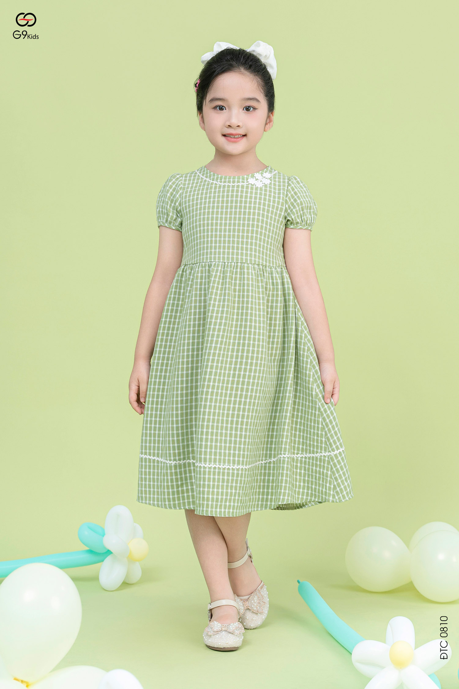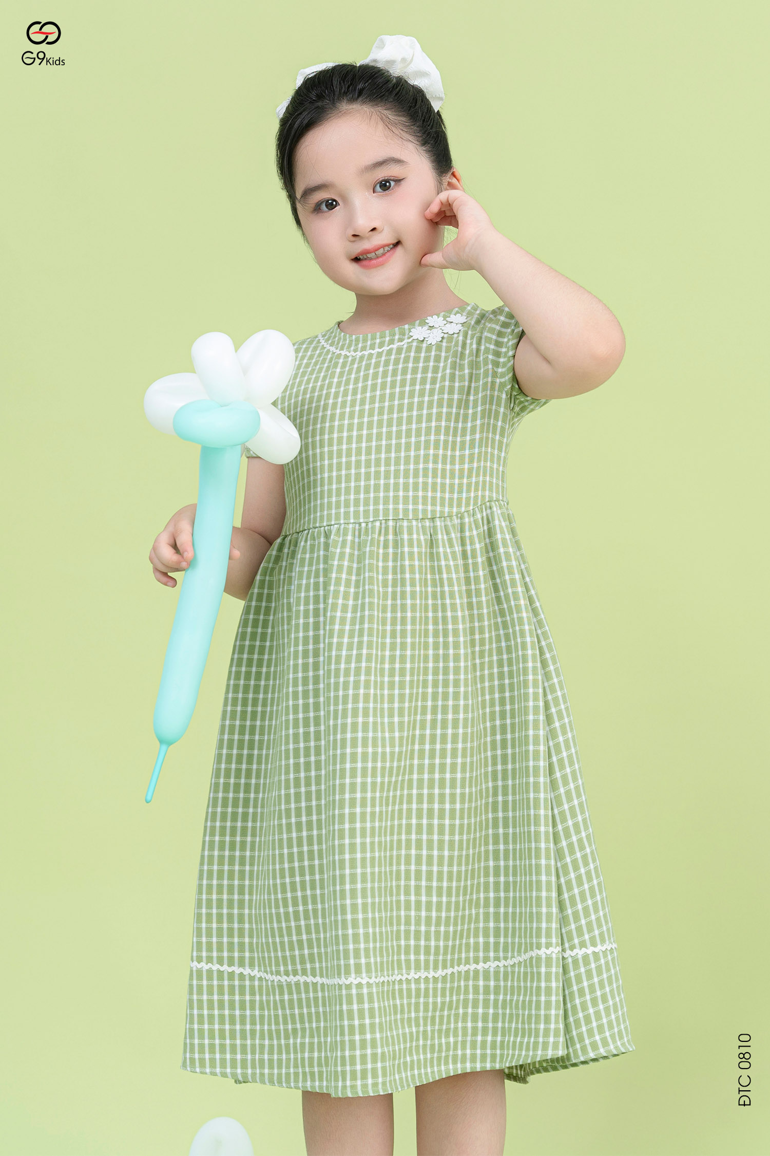 Váy tay cộc cho bé gái chất liệu thô họa tiết kẻ 25S17BĐTC0810-1