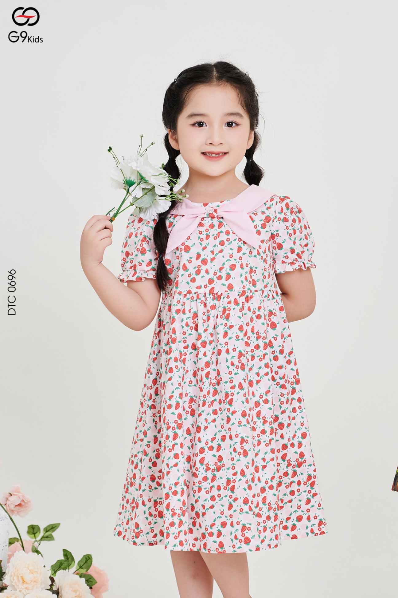 Váy tay cộc dáng xòe phối cổ nơ chất liệu thô họa tiết 24S12BĐTC0696-2