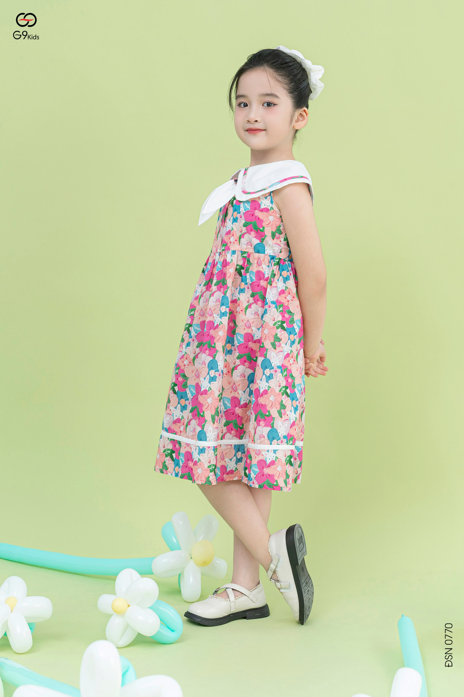 Váy xòe sát nách phối nơ cổ cho bé chất liệu thô hàn 25S11BĐSN0770-2