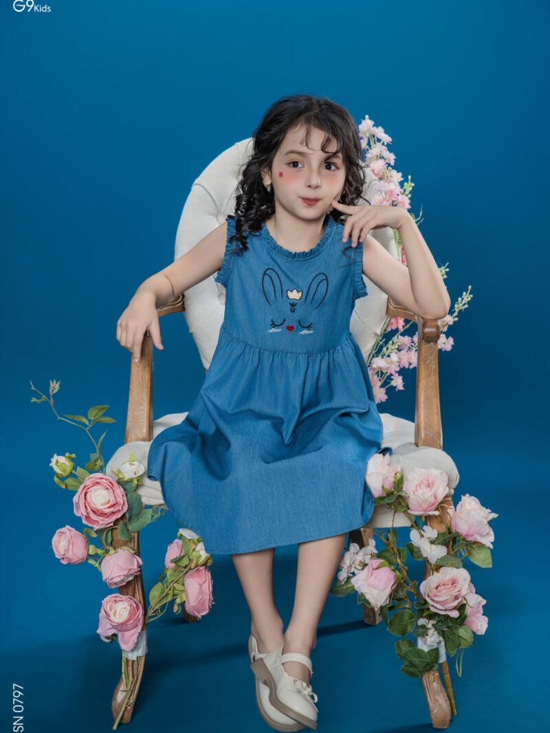 Váy sát nách cho bé gái thêu họa tiết dễ thương chất liệu jeans lụa 25S16BĐSN0797-1