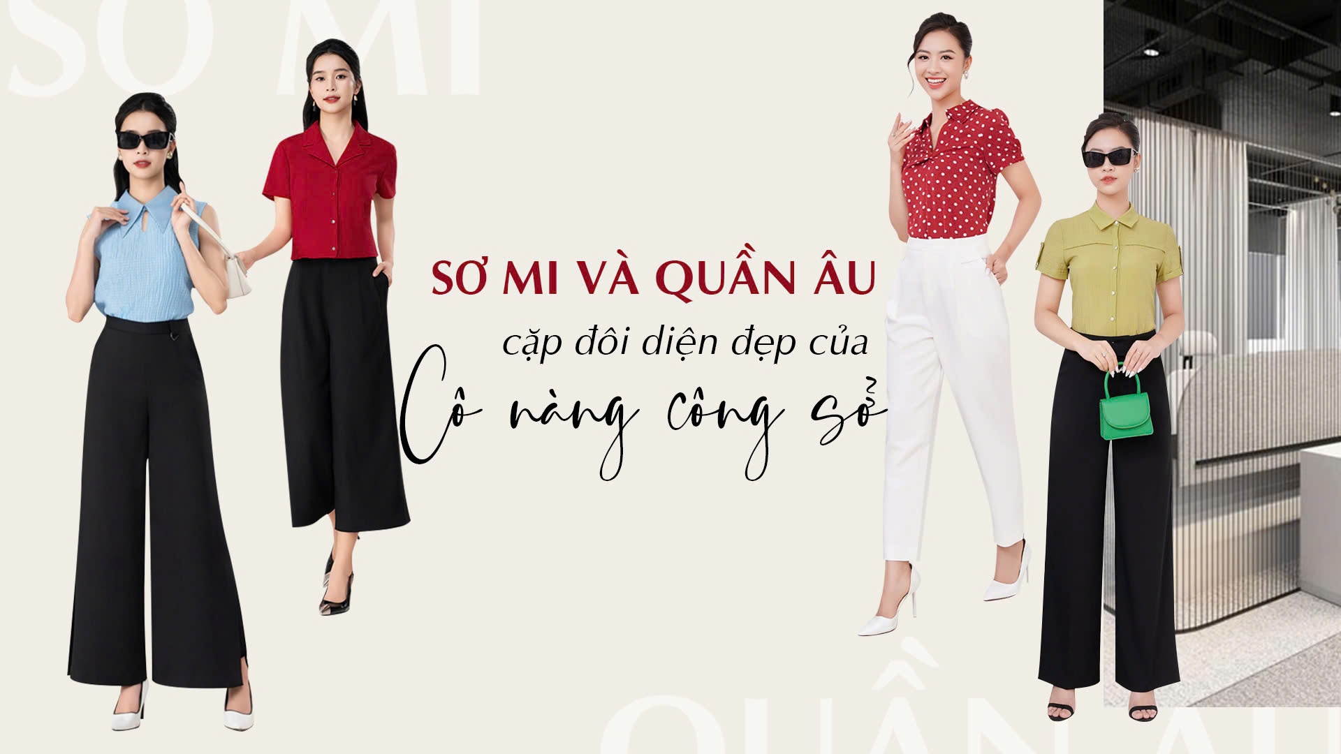 Quý cô có thể chỉ phối sơ mi và quần âu hoặc phối layer thêm áo quây/ crop top và để mở 1 – 2 chiếc cúc áo cho thoáng mát. Cách phối đồ phổ biến cho các bản phối này là đeo trang sức đơn giản, phụ kiện tùy theo sở thích cá nhân.